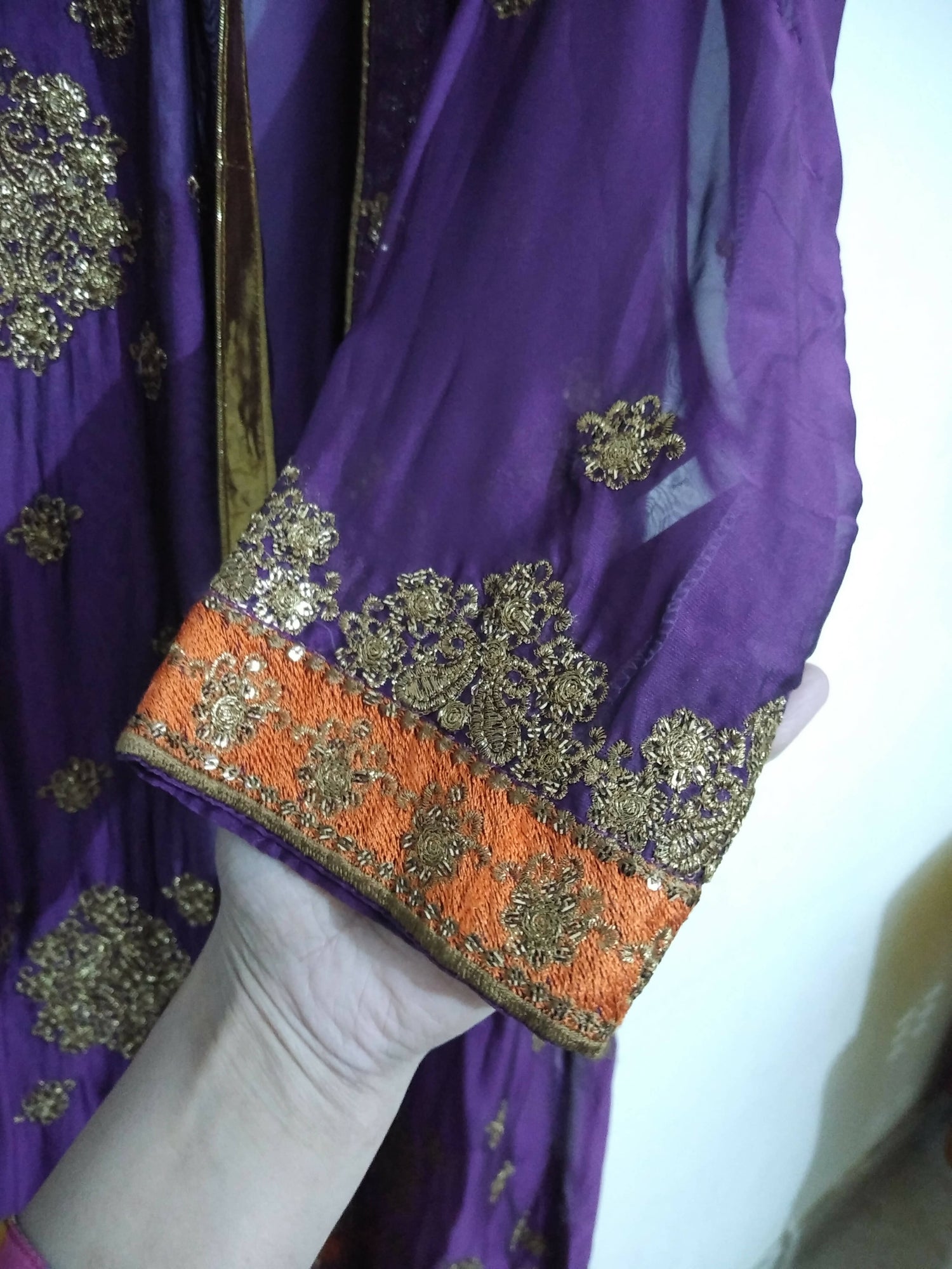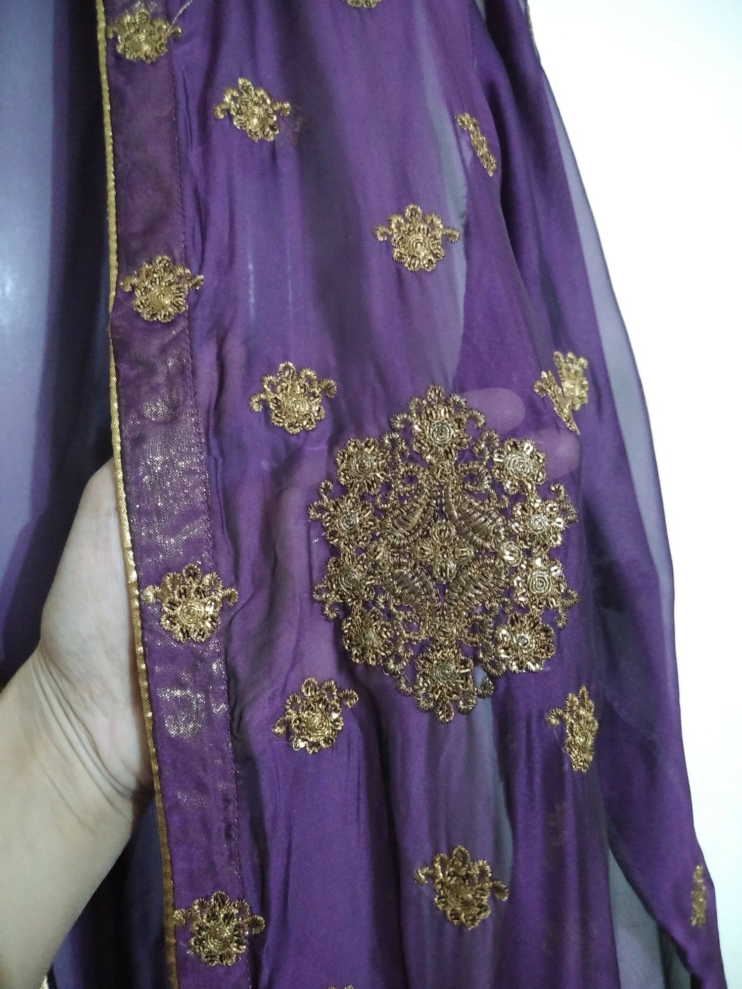 Purple color with copper zari embroidery
