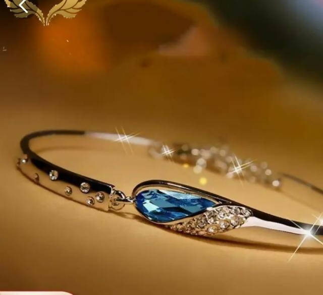 Fashion lady silver plated chain bracelet charm cuff peacock blue bangle jewelry
