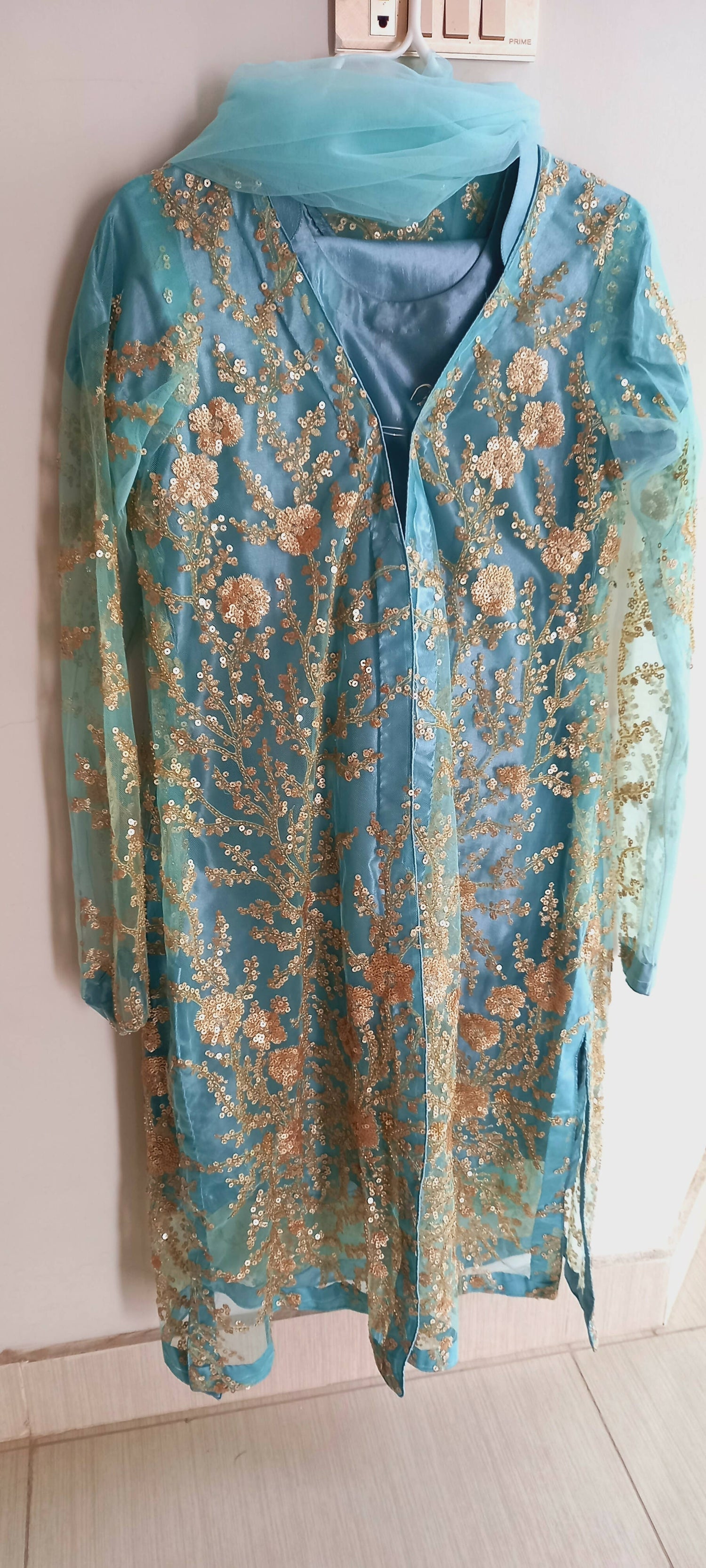 Skyblue & Gold 4 Pc Suit | Women Locally Made Formals | Medium | Worn Once is backordered and will ship as soon as it is back in stock.
