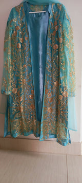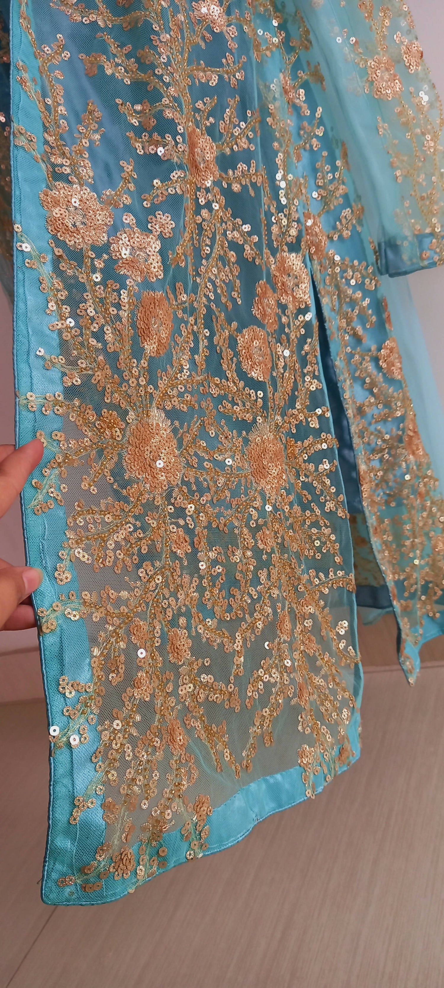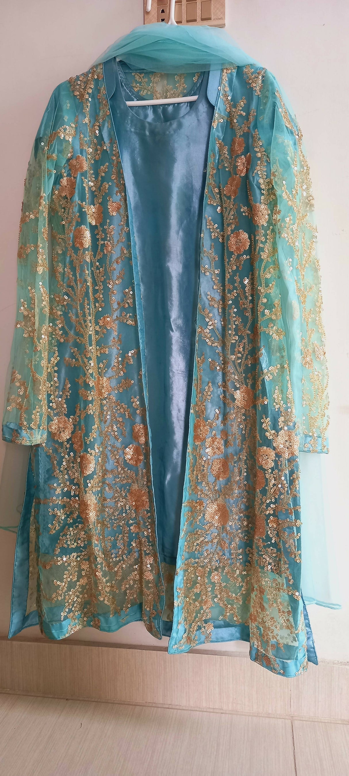 Skyblue & Gold 4 Pc Suit | Women Locally Made Formals | Medium | Worn Once
