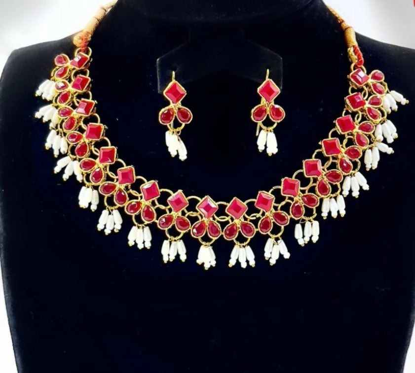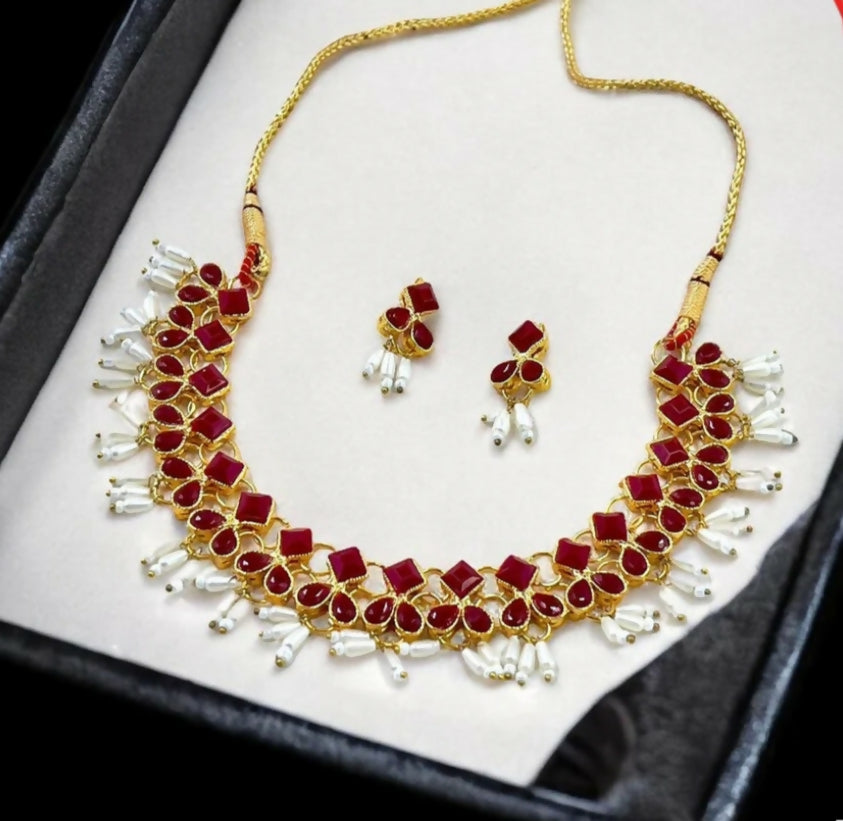 Square/pearl drop necklace set for Women-243 | Women Jewelry | Wedding Jewelry & Sets | Brand New - Ruby is backordered and will ship as soon as it is back in stock.