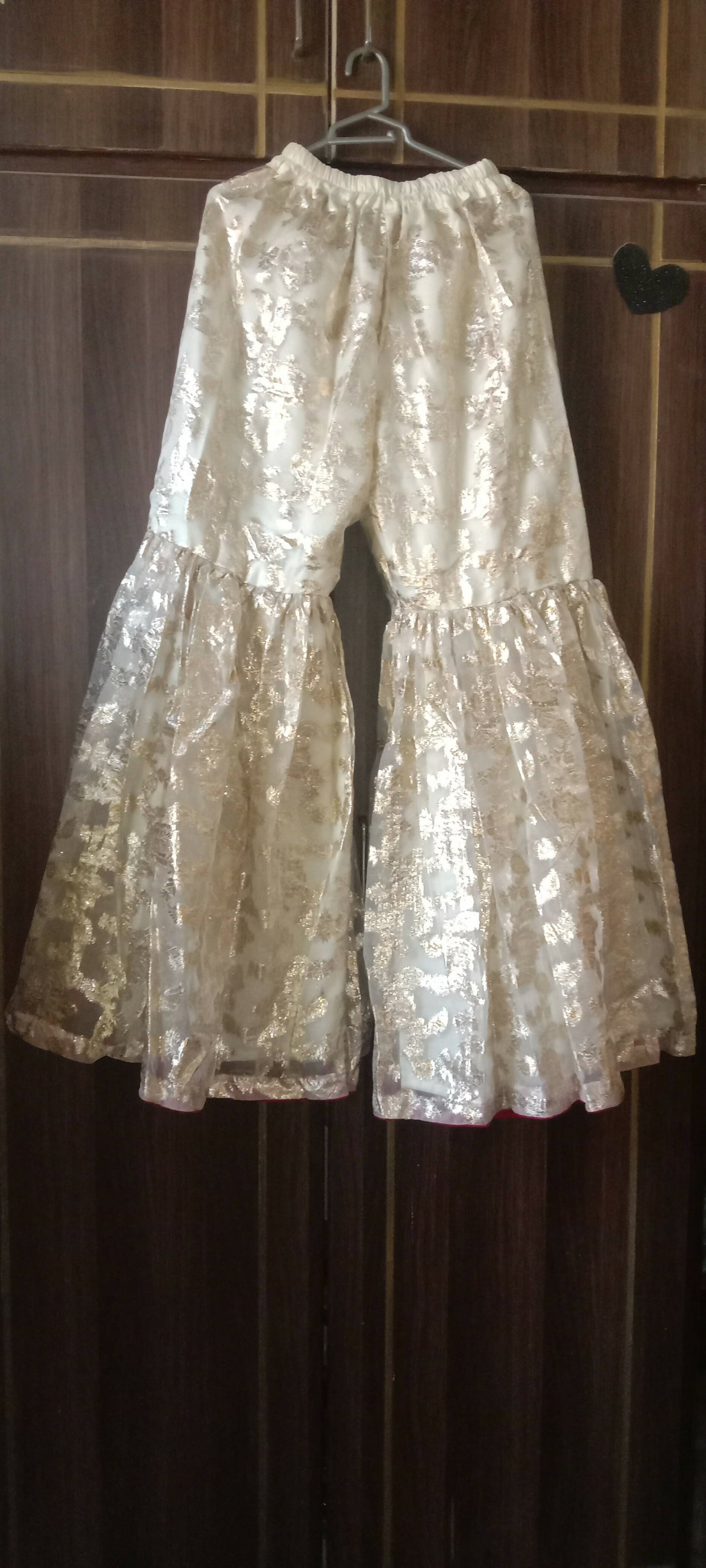 | MATERIAL & MEASUREMENT | Measurements: Chest 31 Length 58 Trouser length 37 Fabric / Material: Organza |