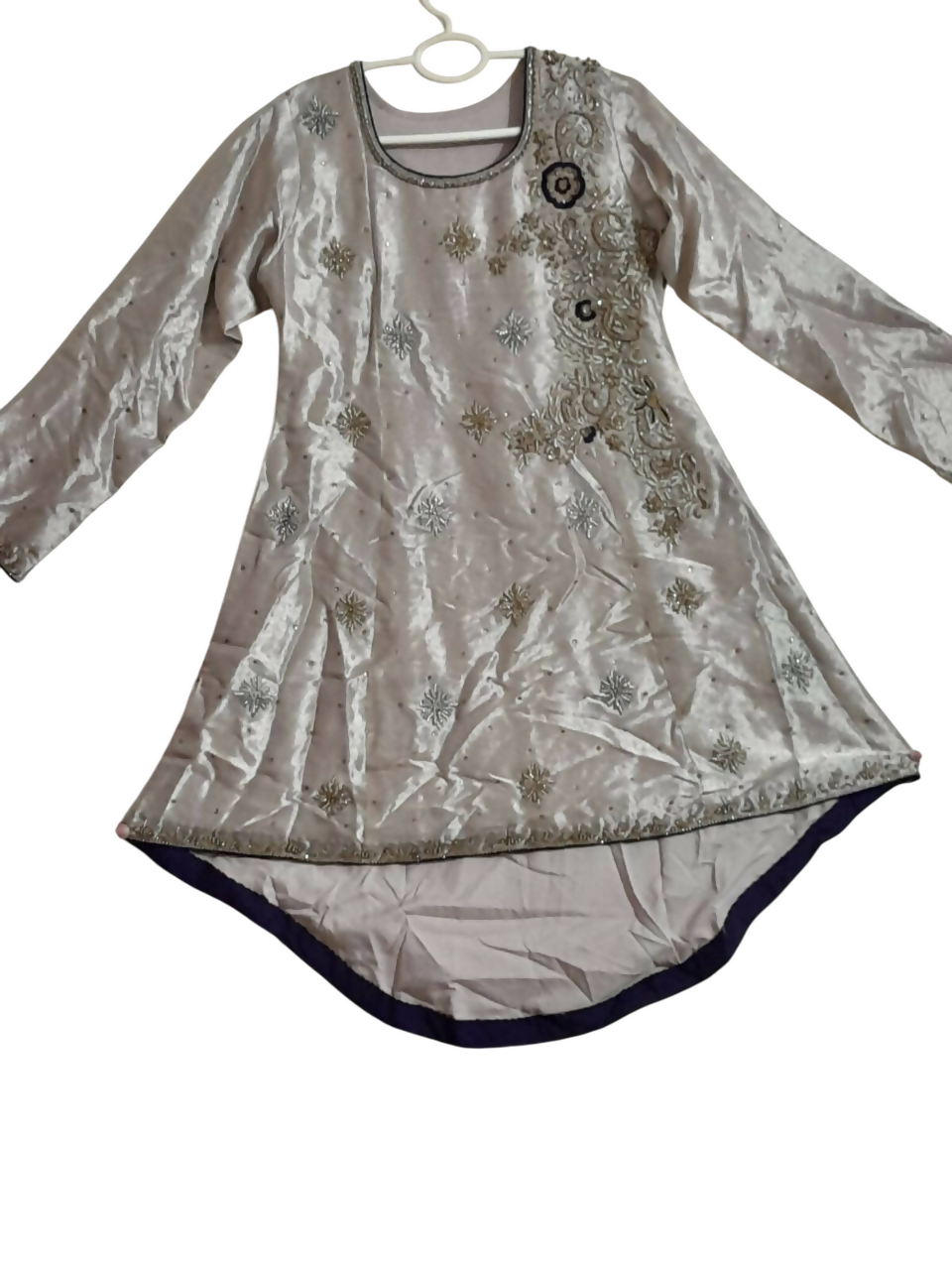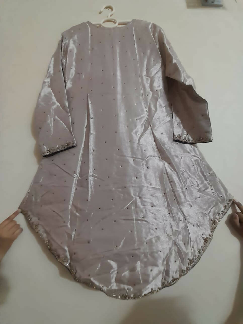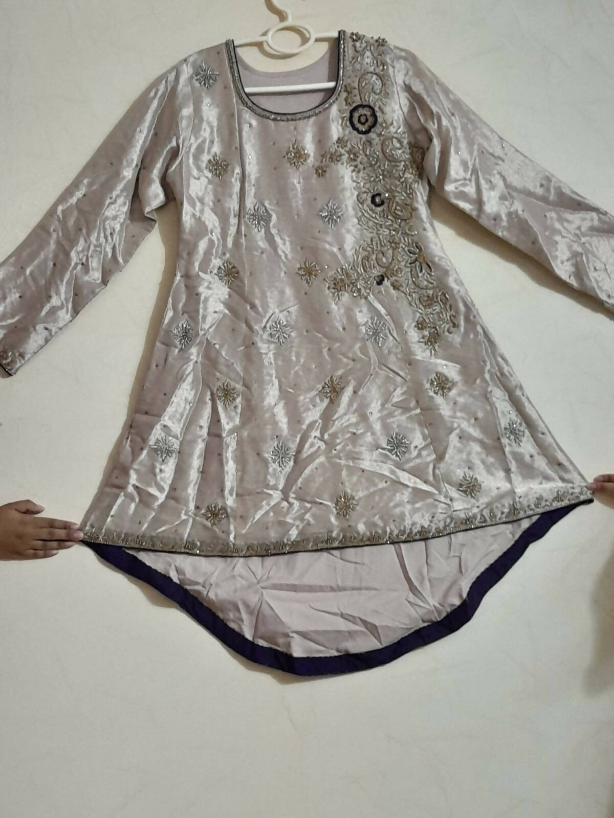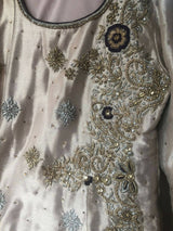 | MATERIAL & MEASUREMENT | Sleeves 23 Front length 35 Back length 43 Chest 20.5 Waist 18 Dhaka pajama length 43 (Jamawar) |