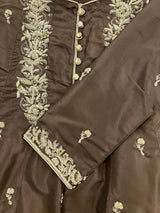 | MATERIAL & MEASUREMENT | Measurements: Chest:18 Length:39 Shoulder:14 Trouser length:36 Fabric / Material: Raw Silk |