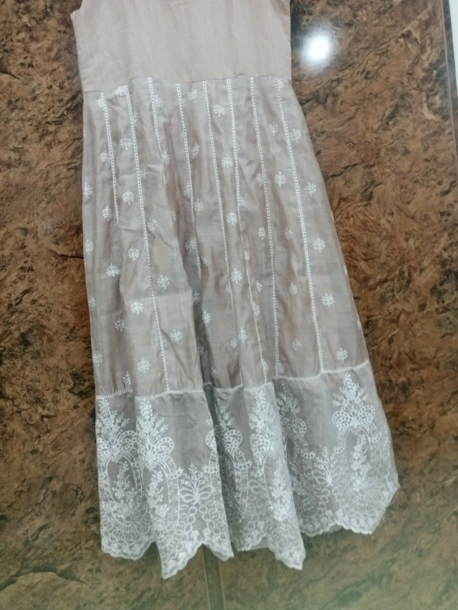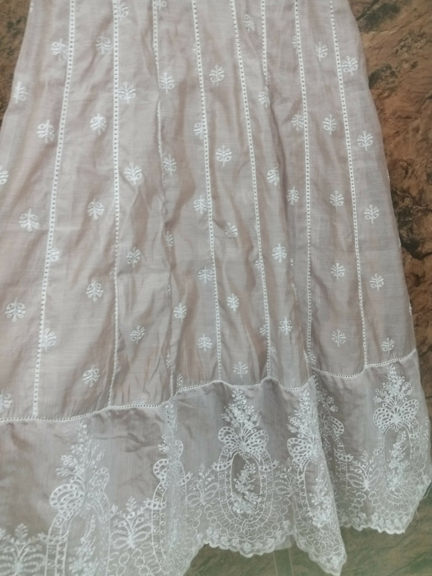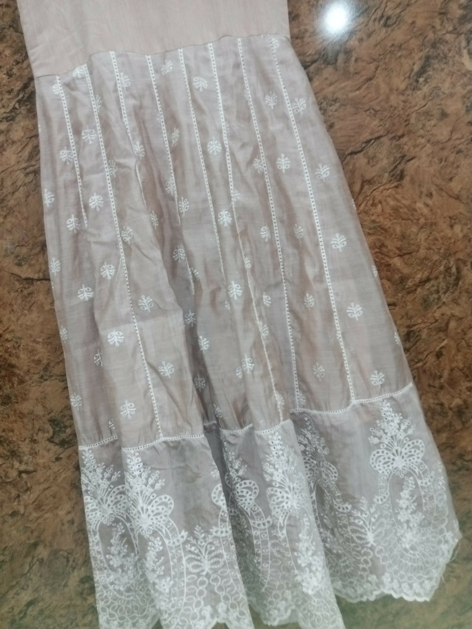 | MATERIAL & MEASUREMENT | Cotton silk maxi & trousers Embroidered net duppatta |