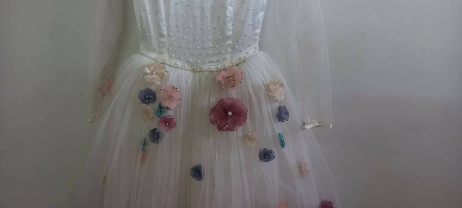 MATERIAL & MEASUREMENT Measurements (inches): Shoulder: 15 Chest: 20 Waist: 16 Sleeves length: 20 Frock length: 62