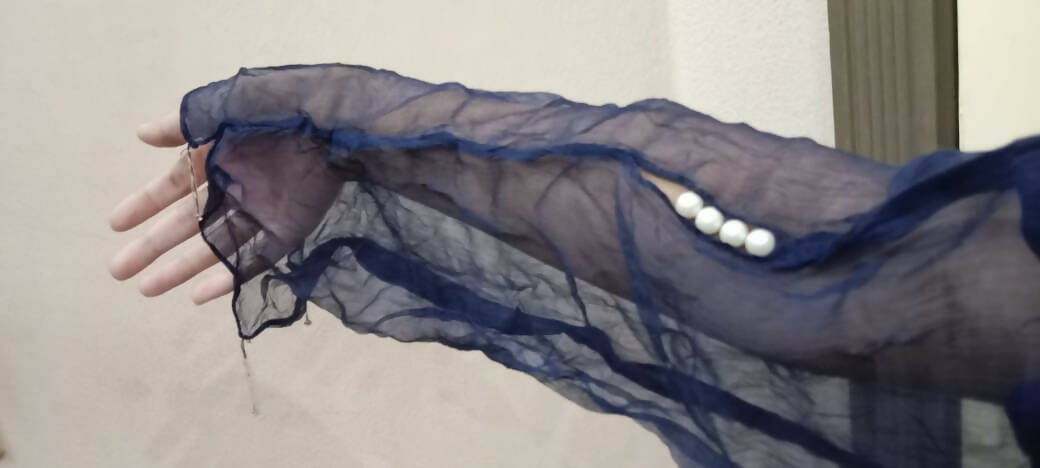 | MATERIAL & MEASUREMENT | Chiffon party wear in 3 piece (Shirt in a tale style from sides) Sleeves 19.5 Shoulder 14.5 Chest 17 Front length 35 Back length 39 |