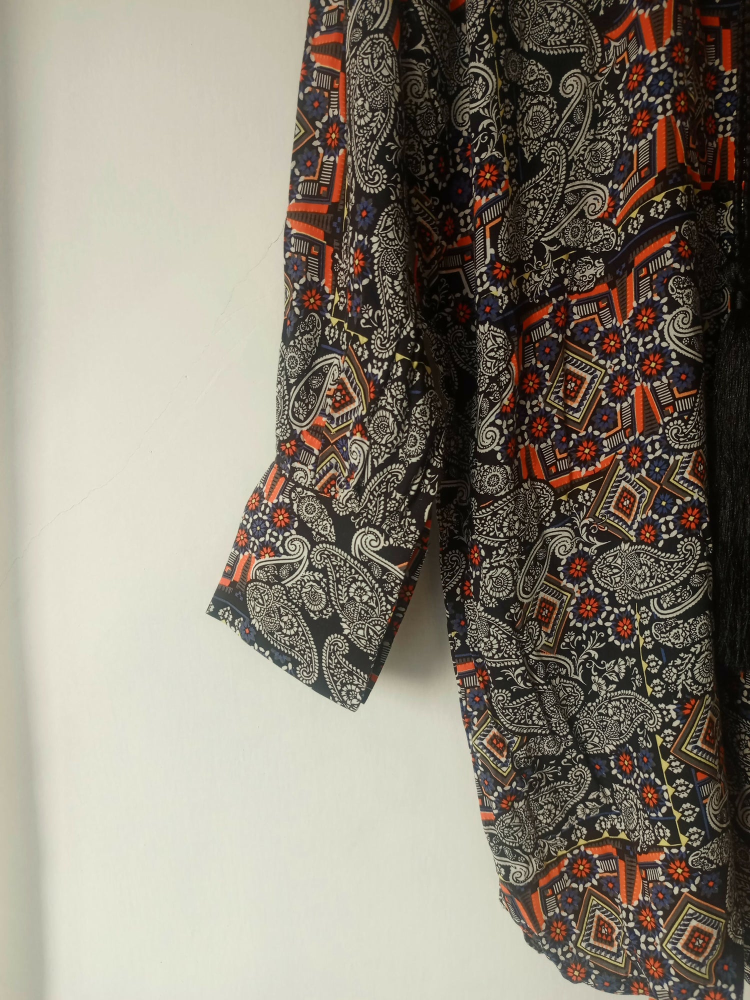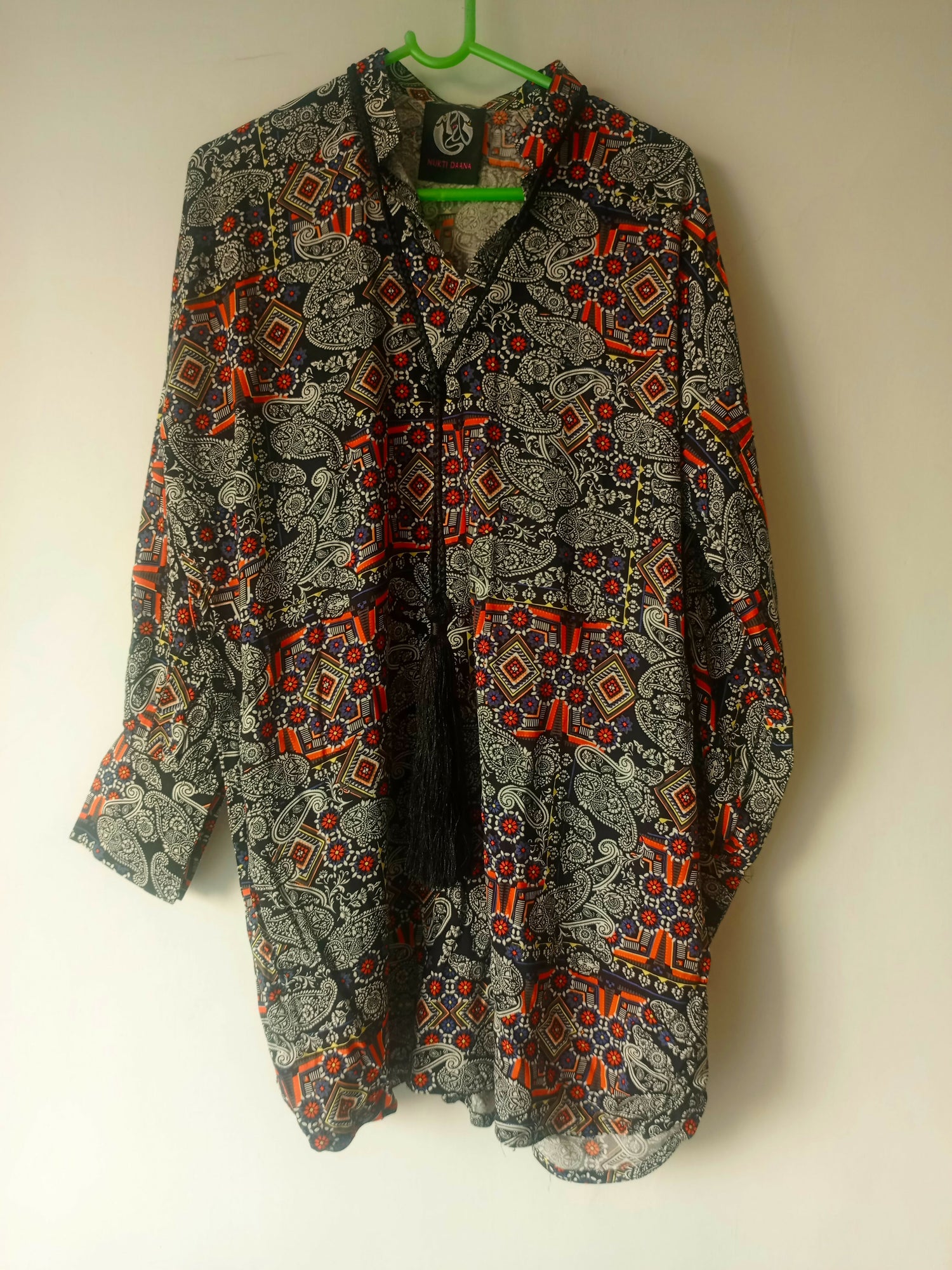 Multicolor print kurti with tasseled details, cuff sleeves , linen kurti. Local brand . Brand new in discount price stock clearance.