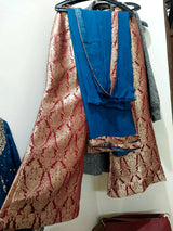 Fabric / Material: Chiffon kameez, Jamawar Bell bottom trouser and chiffon Dupatta