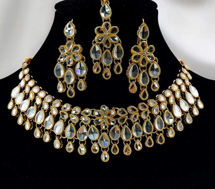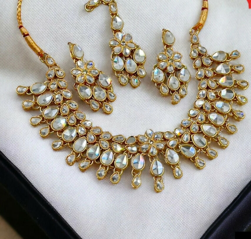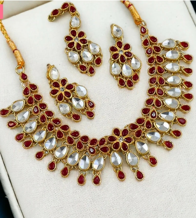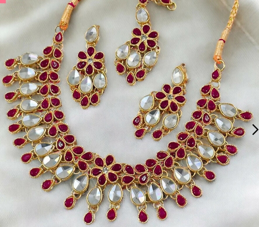 Number of pieces: 4 (1 pair of earring, necklace,bindi)