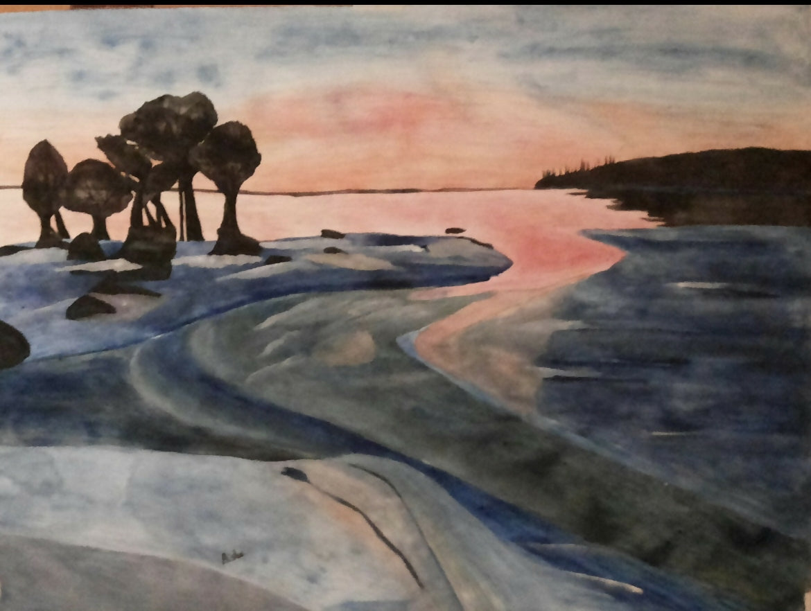 | MATERIAL & MEASUREMENT | Water colors on paper Glass frame 22*30 inches |