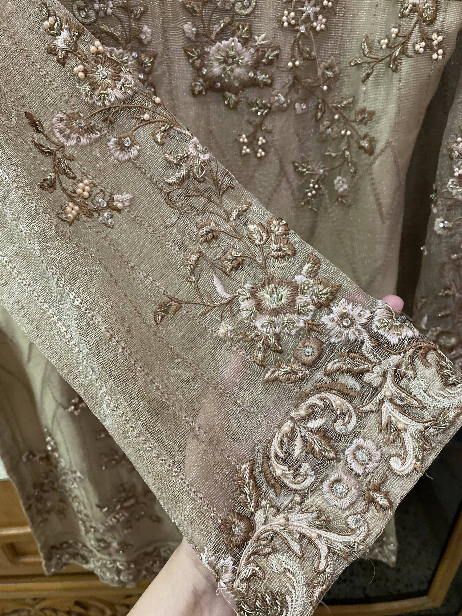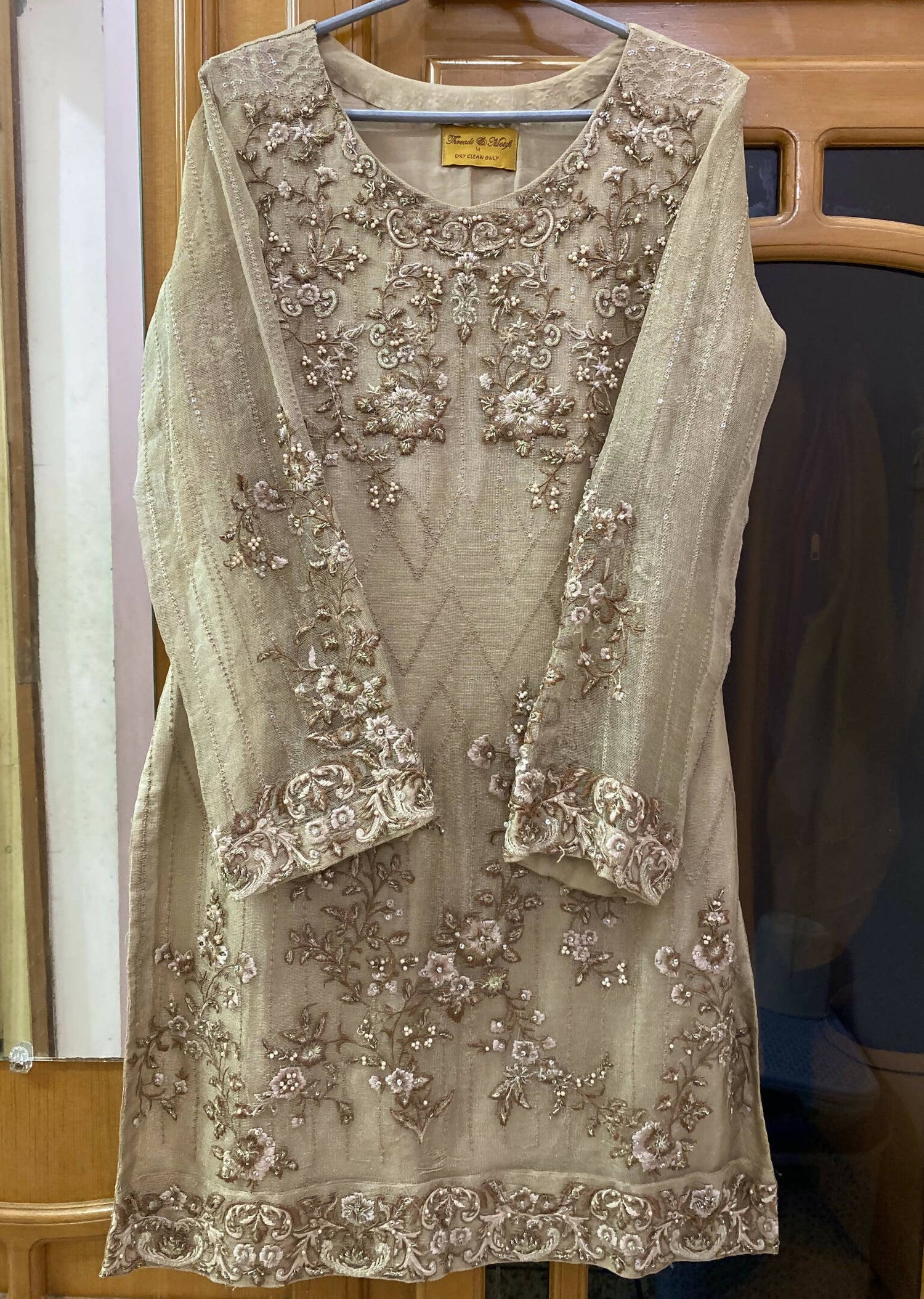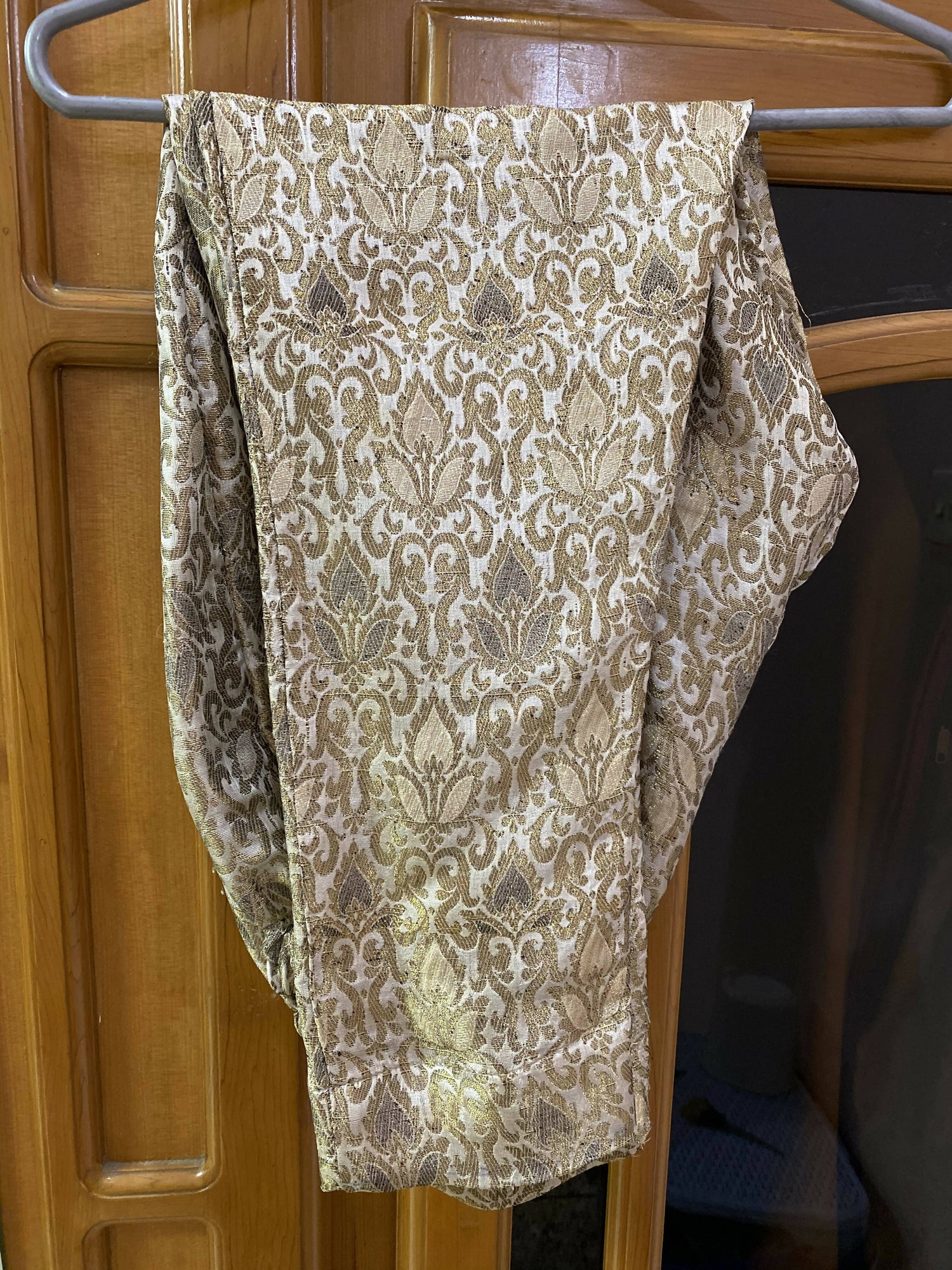 | MATERIAL & MEASUREMENT | Shirt material: net Trouser material: jamavar Shirt length: 38 inch Trouser length: 37 inch |