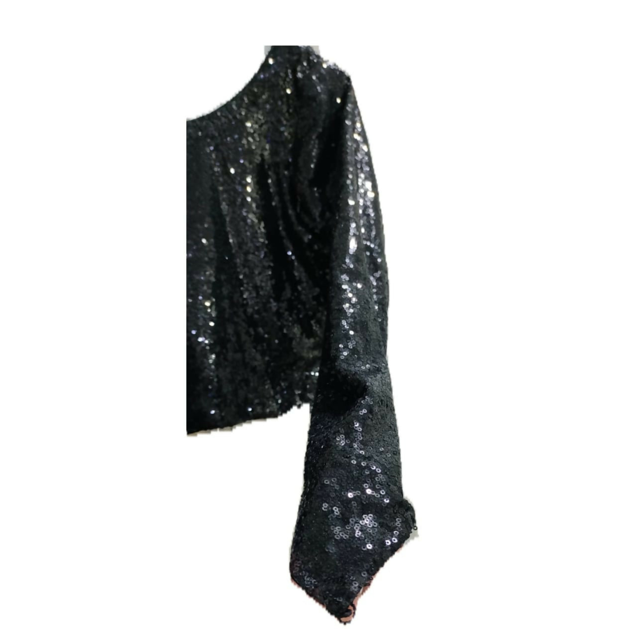 | MATERIAL & MEASUREMENT | Chiffon saree with black moonlight sequence blouse and soft malai paiti coat Size small |