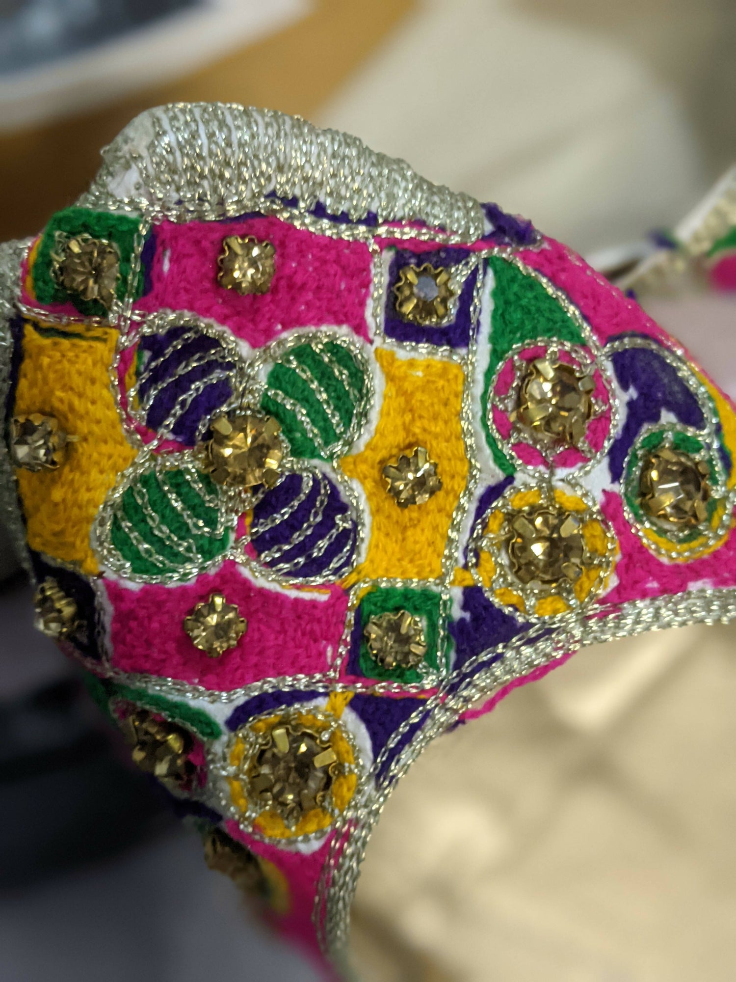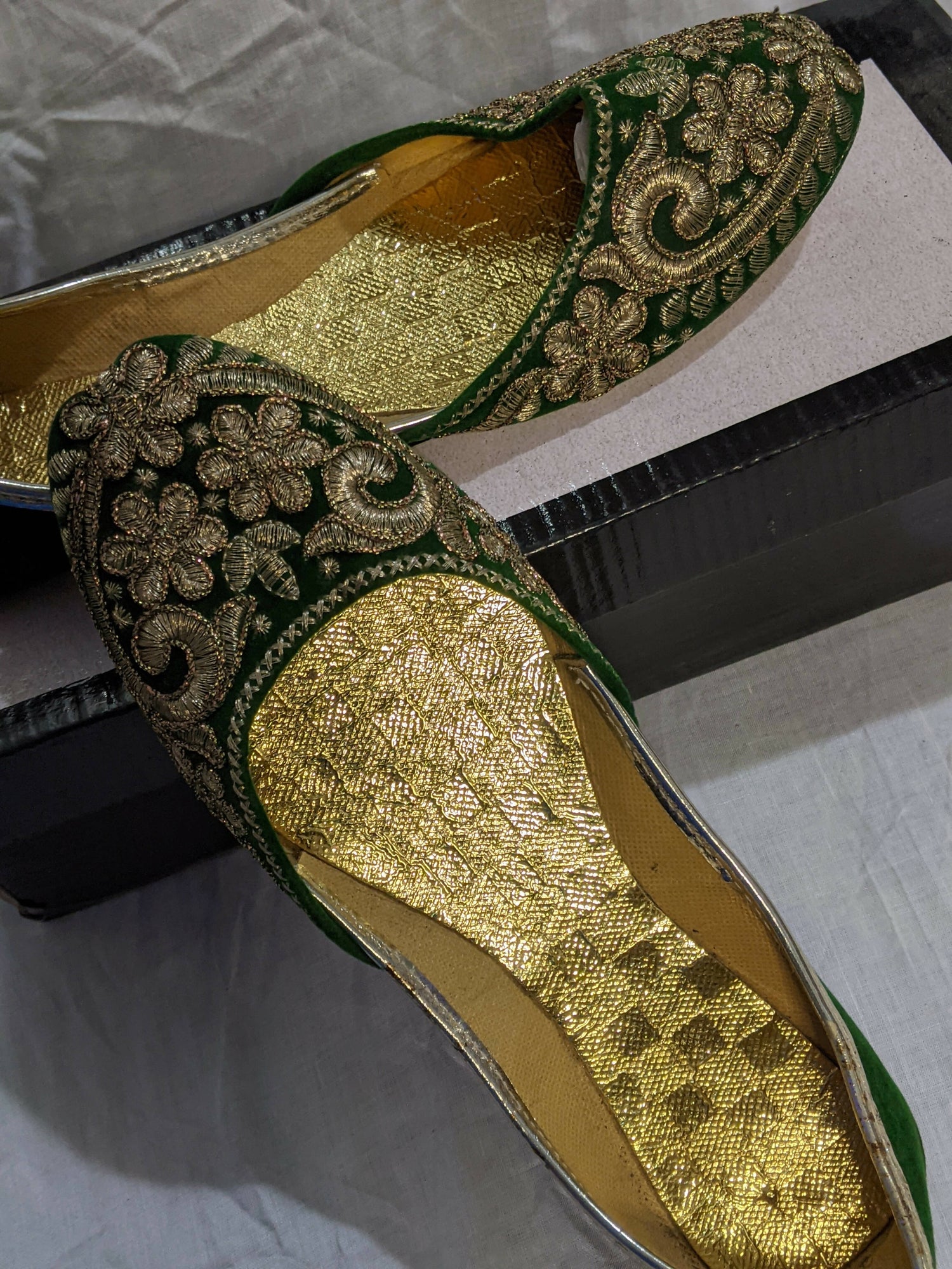MATERIAL & MEASUREMENT Green khussa size 9 /9.84inches Multi khussa size 9/9.8 inches