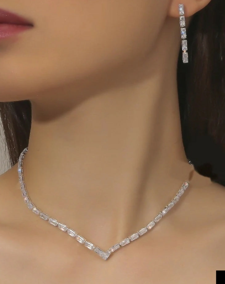 V-Baguette Necklace Set-086 | Women Jewelry | Wedding Jewelry & Sets | Brand New