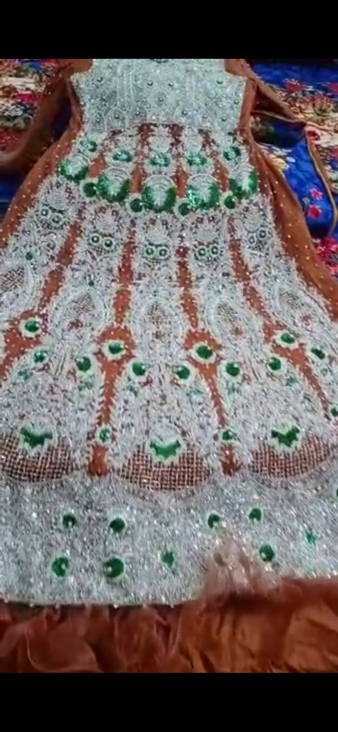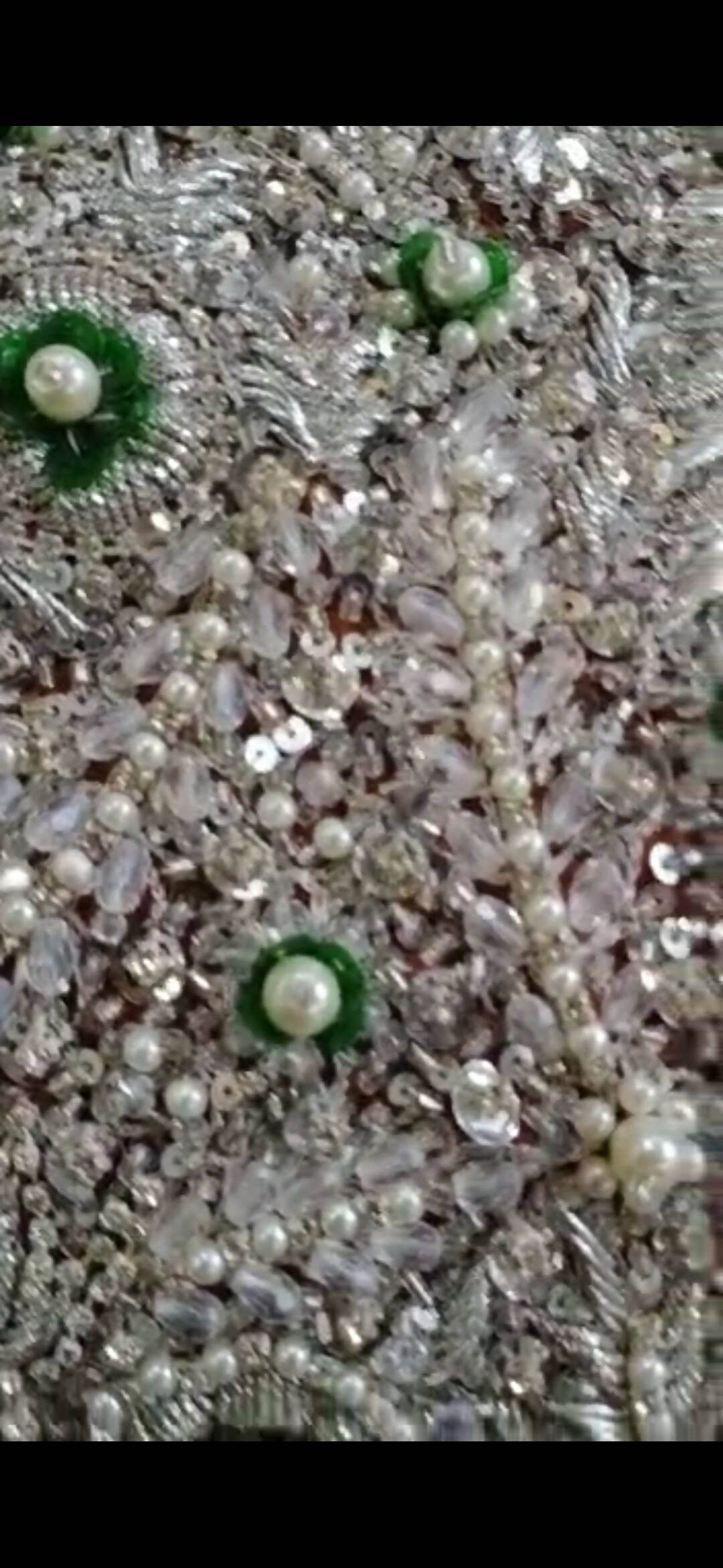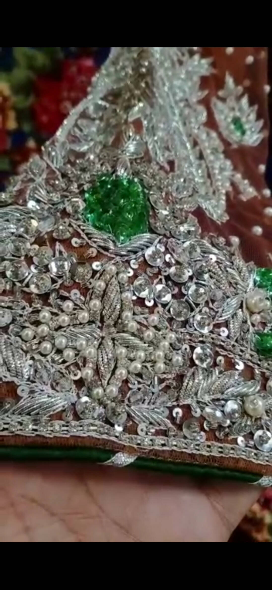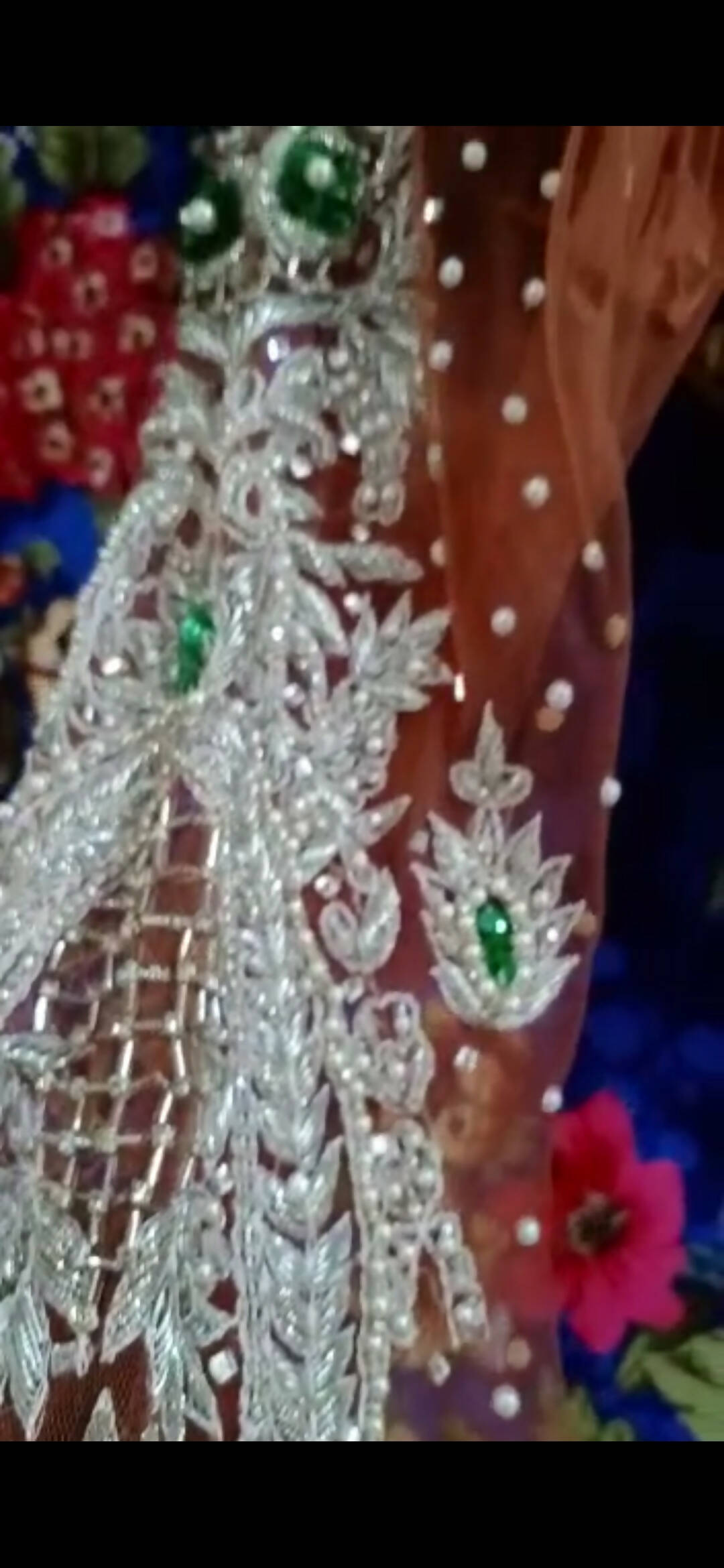 Work details : fully adda work of kora dabka tilla sequence and mirror perals on front , tail back , and duppatta matha patti borders