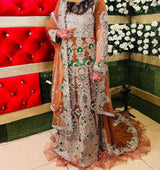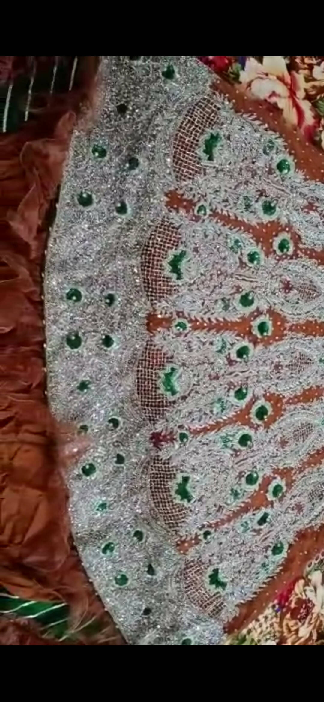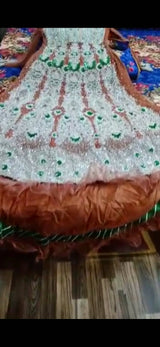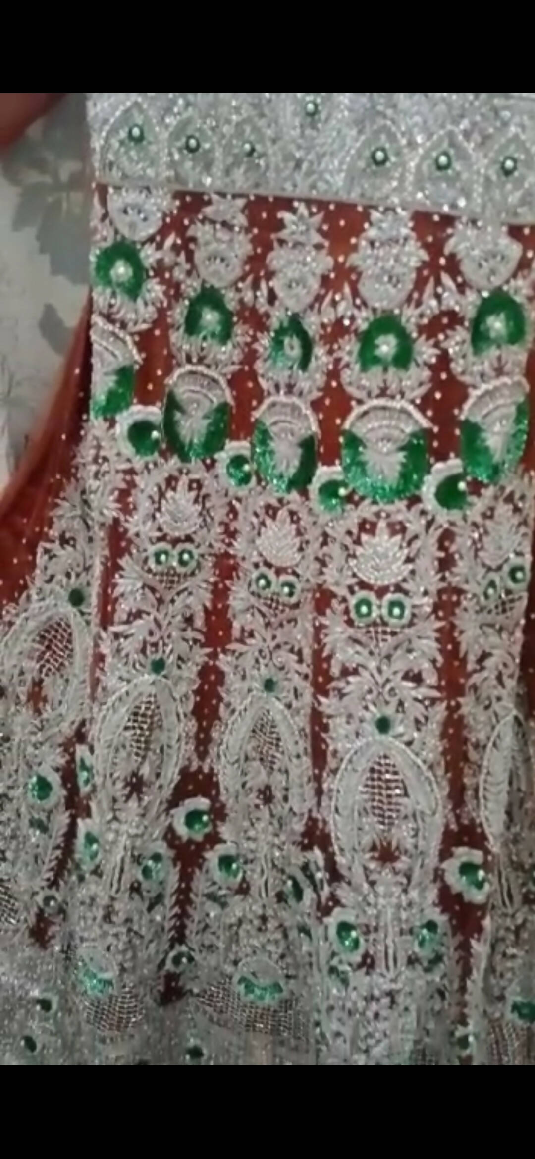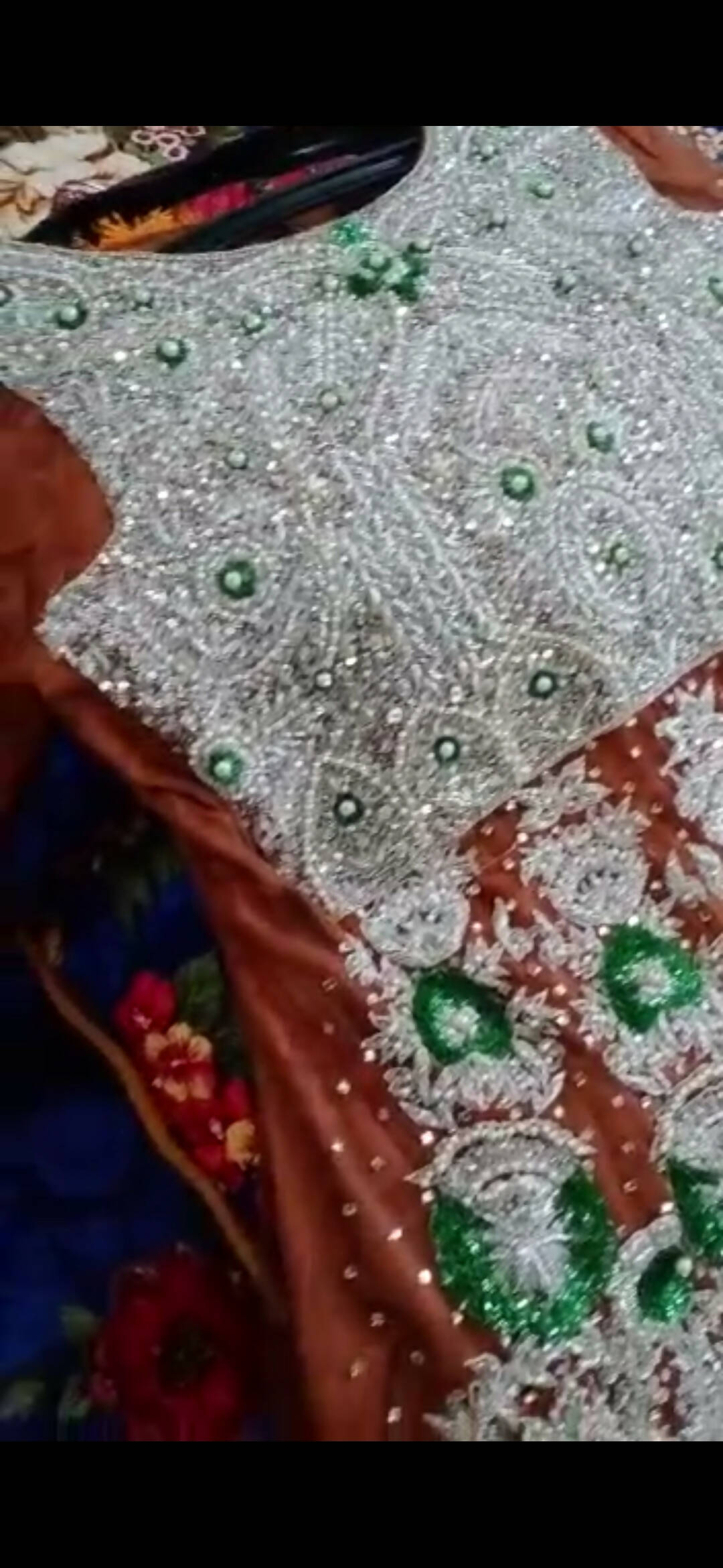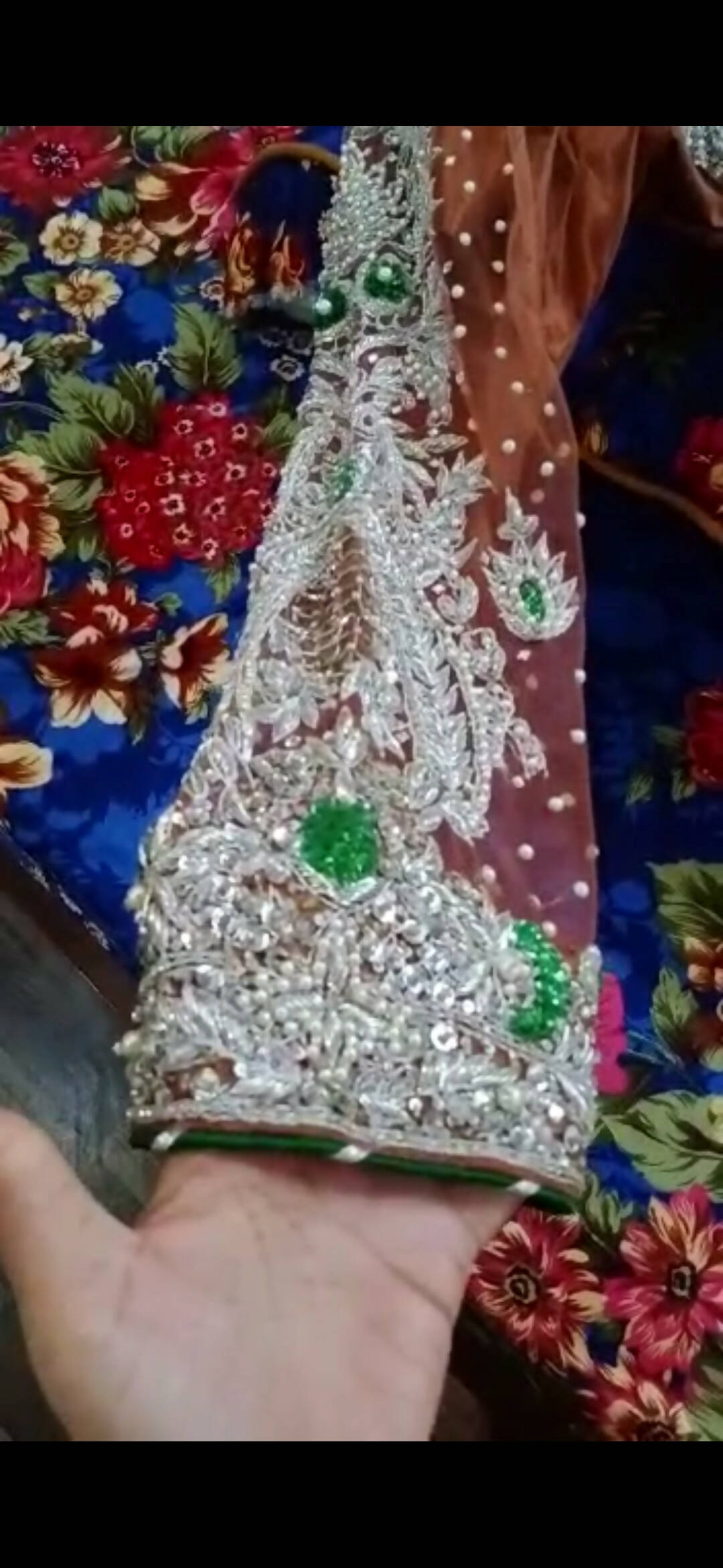 Work details : fully adda work of kora dabka tilla sequence and mirror perals on front , tail back , and duppatta matha patti borders