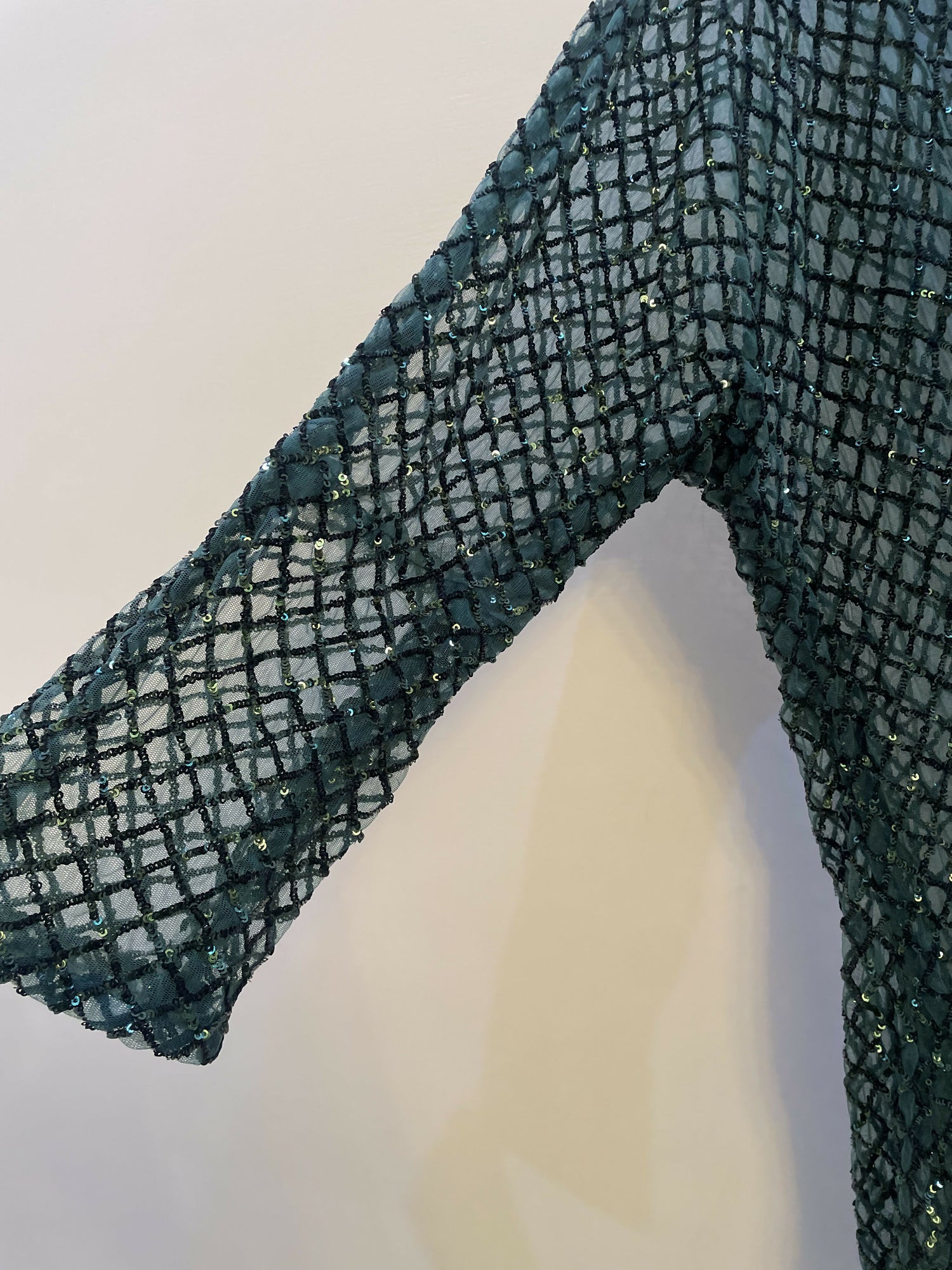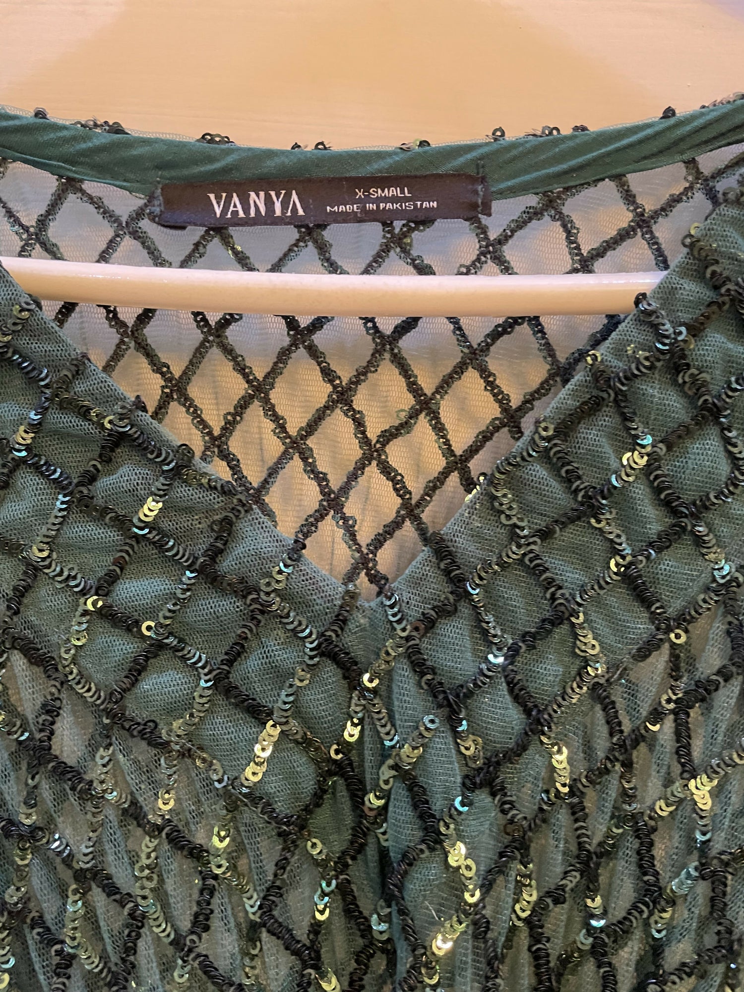 | MATERIAL & MEASUREMENT | Size: X Small Fabric: Sequinned Net and Cotton Silk |