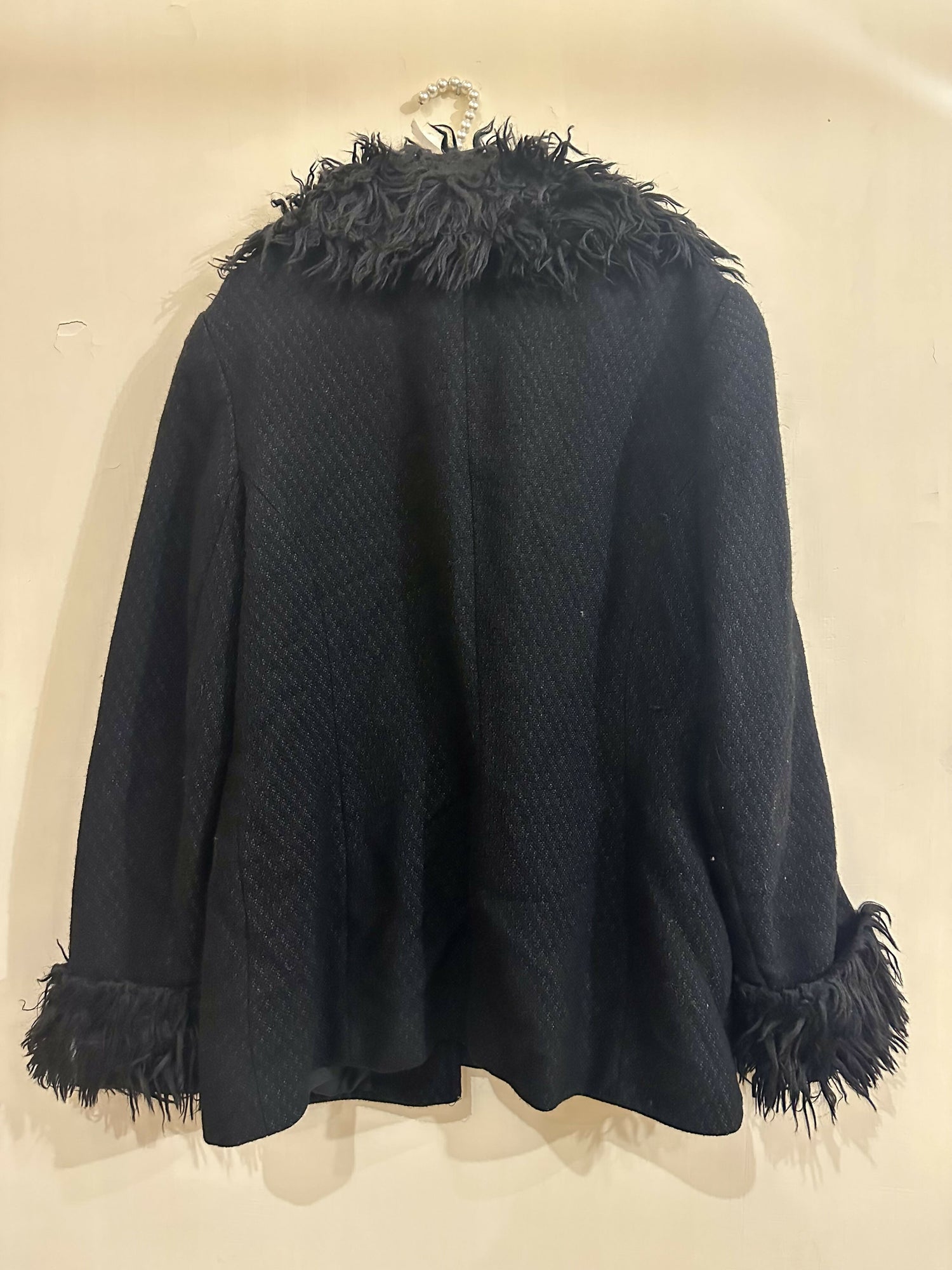 | MATERIAL & MEASUREMENT | Black fur coat Chest: 20 Arms: 23 Shoulder: 16.5 Length: 27 |