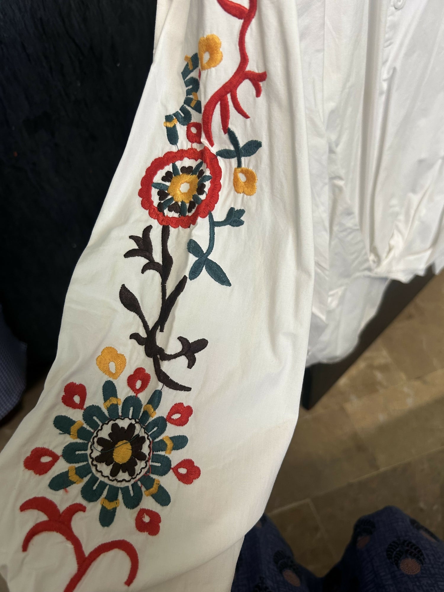 White Embroidered Floral Mandarin Collar Tunic Top | Women Tops & Shirts | Large | New is backordered and will ship as soon as it is back in stock.