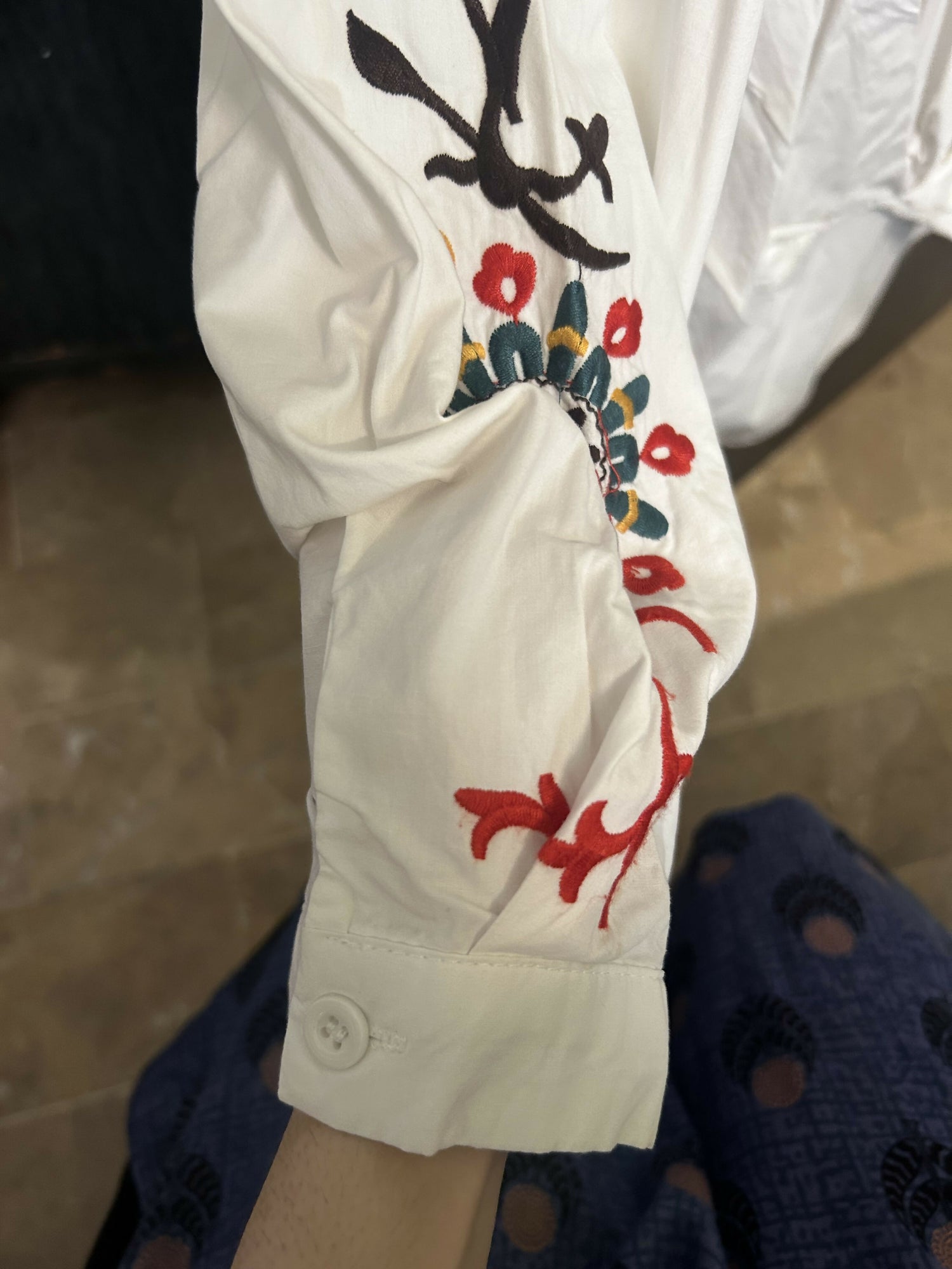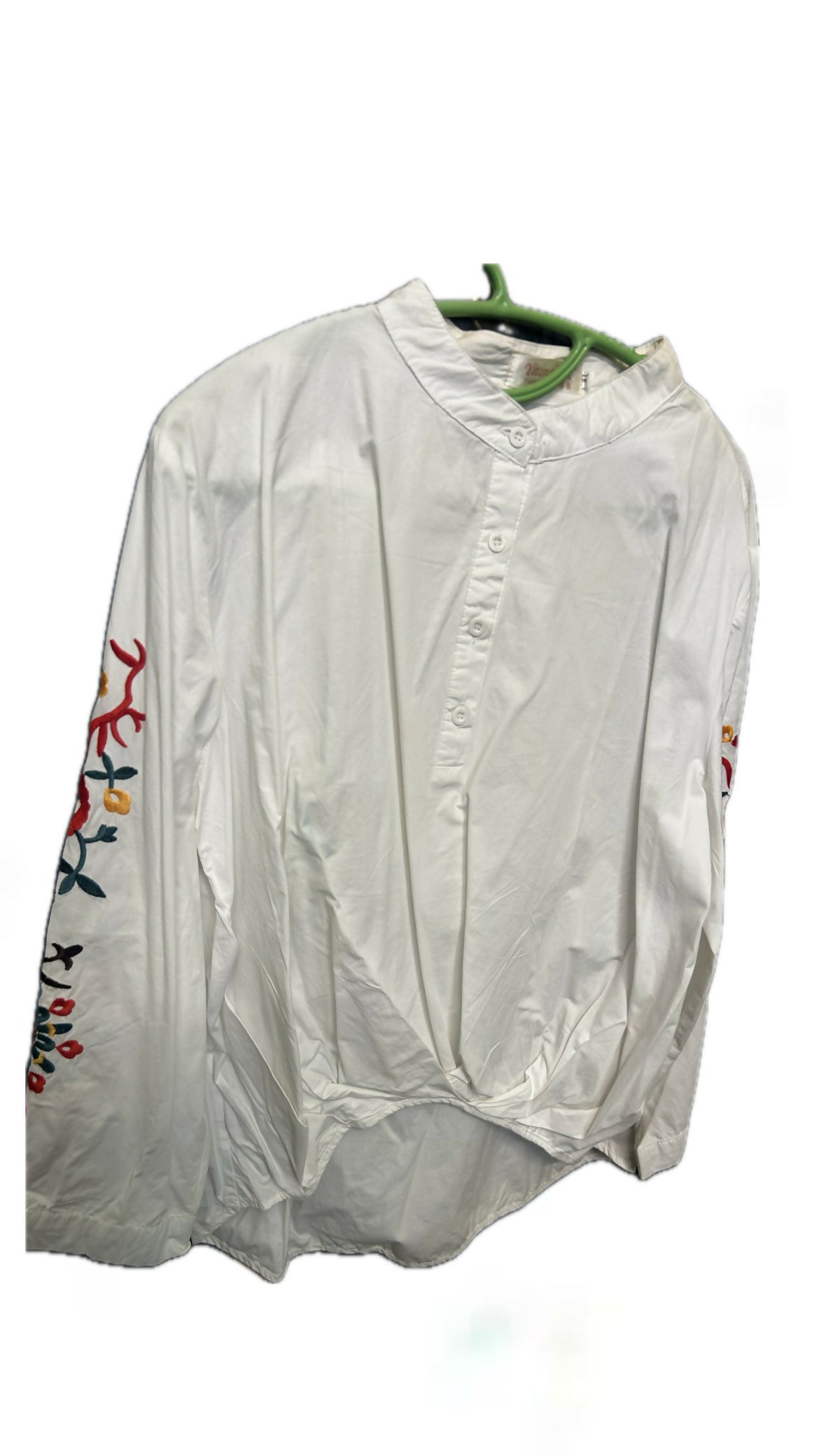 White Embroidered Floral Mandarin Collar Tunic Top | Women Tops & Shirts | Large | New