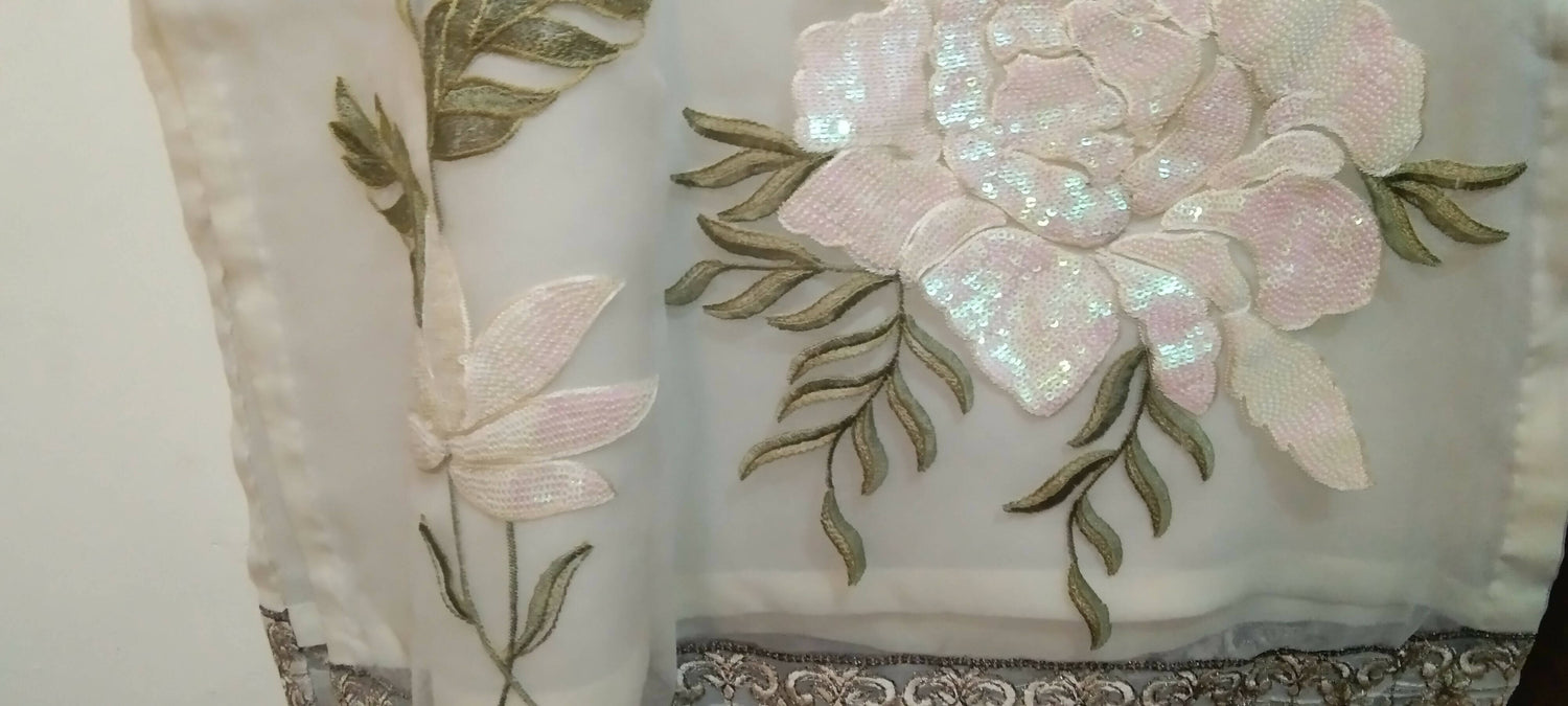A beautiful and decent 3 piece suit organza stuff dupatta chiffon