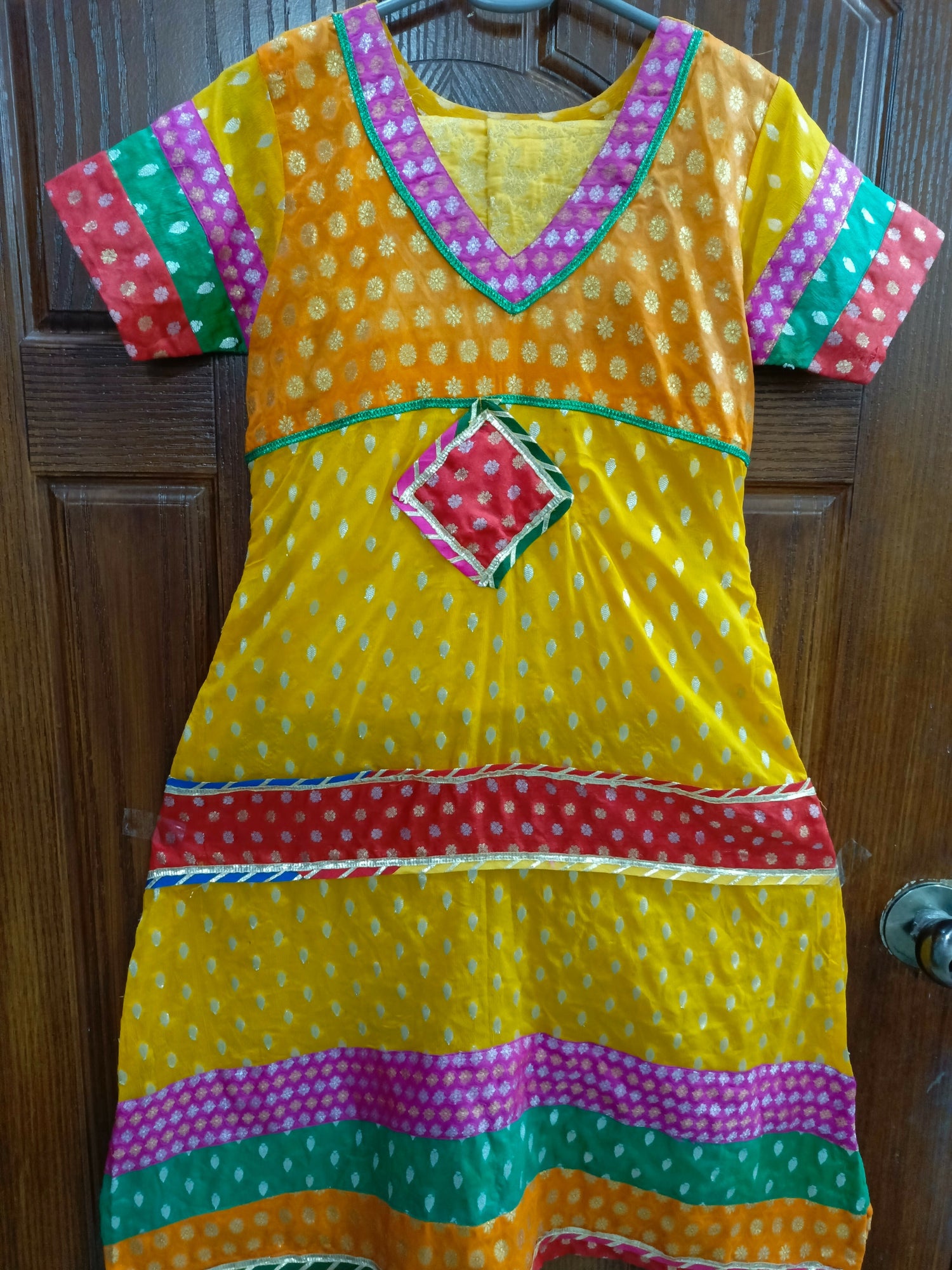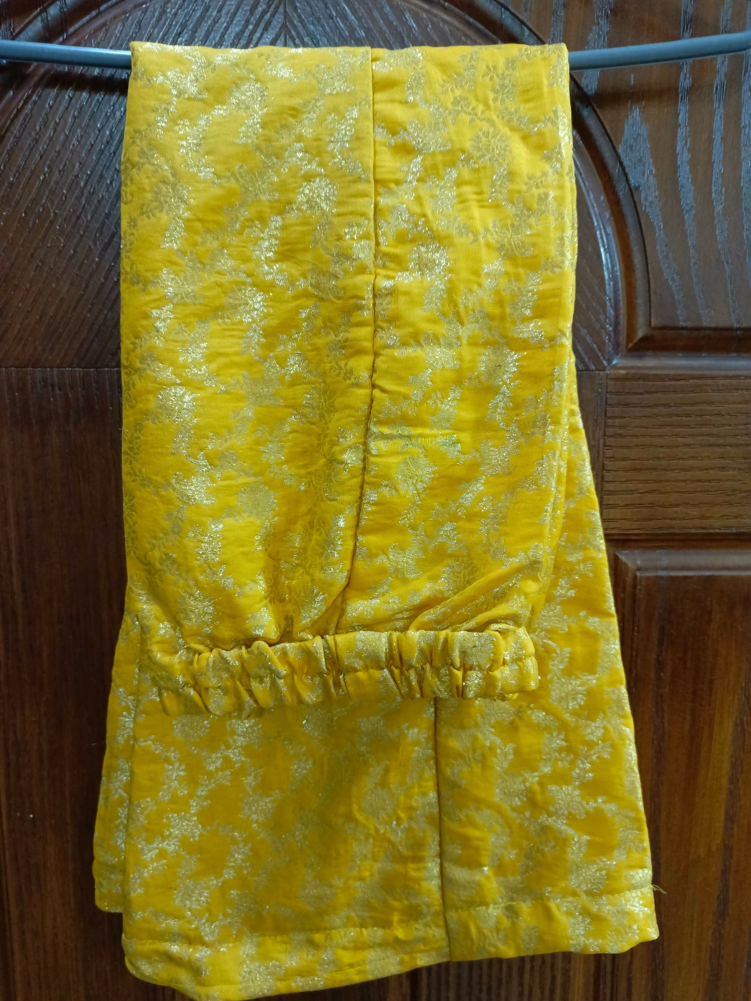 | MATERIAL & MEASUREMENT | Material: fancy Jamawar Measurements (inches) Shirt length 40 Chest 18 Shoulder 14 Trouser length 33 Hips 18 Waist 20 |