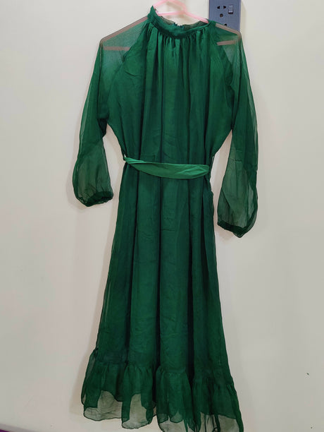 Bottle Green Open Frock Double Maxi | Women Locally Made Formals | Large | Preloved