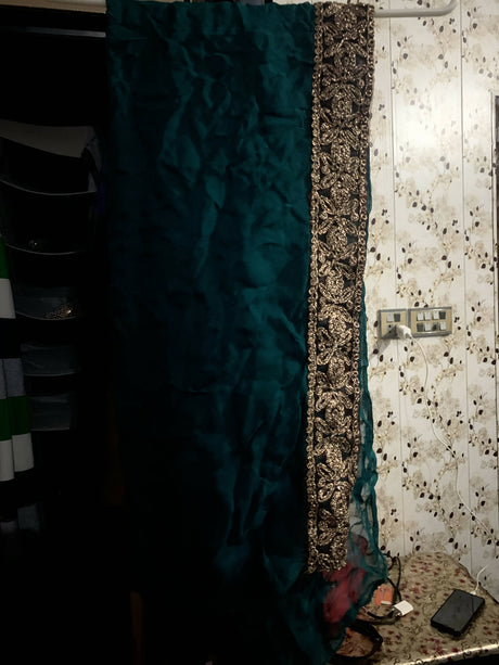 Sky Blue Crystal Pearls Sarees | Women Sarees | Women Locally Made Formals | Medium | Worn Once