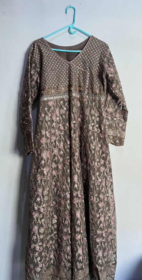 Embroidered Maxi with Banarsi Sharara | Women Locally Made Formals | Small | Preloved