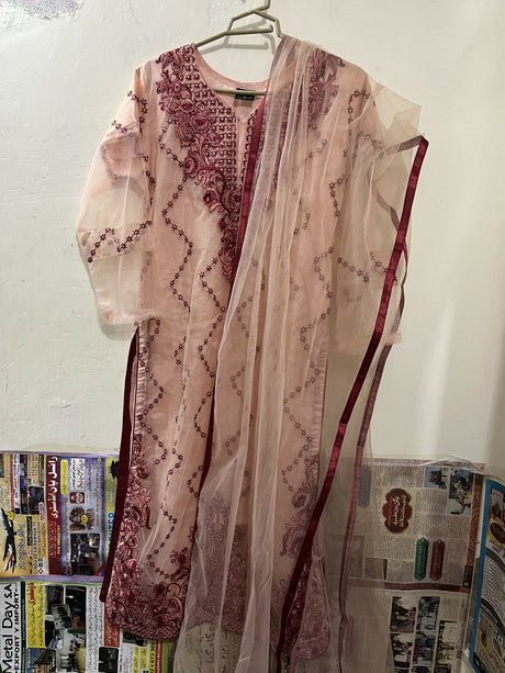 Shaposh | 2-PC Net Embroidered Suit| Women Branded Formals | Small | New