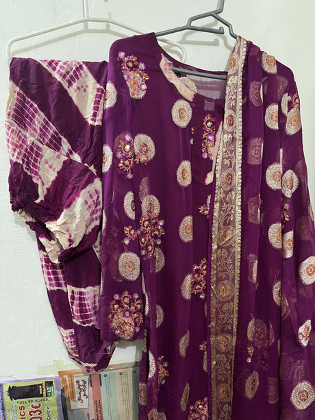 Rs.1,999.00Rs.5,500.00Unit price /Unavailable Embroiza | Three Piece Raw Silk Dress | Mirror Work | Women Branded Formals | Small | New