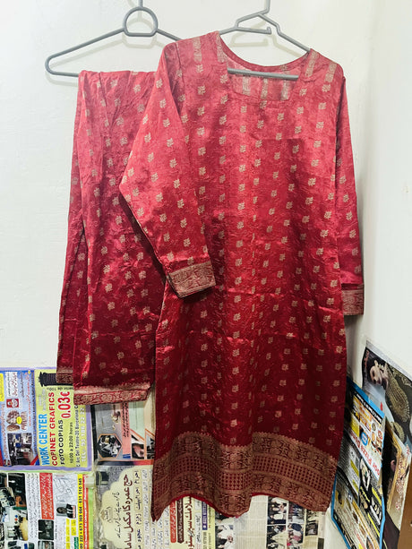 Sheikh Boutique | Red Velvet Formal Kurta | Women Branded Formals | Medium | Worn Once
