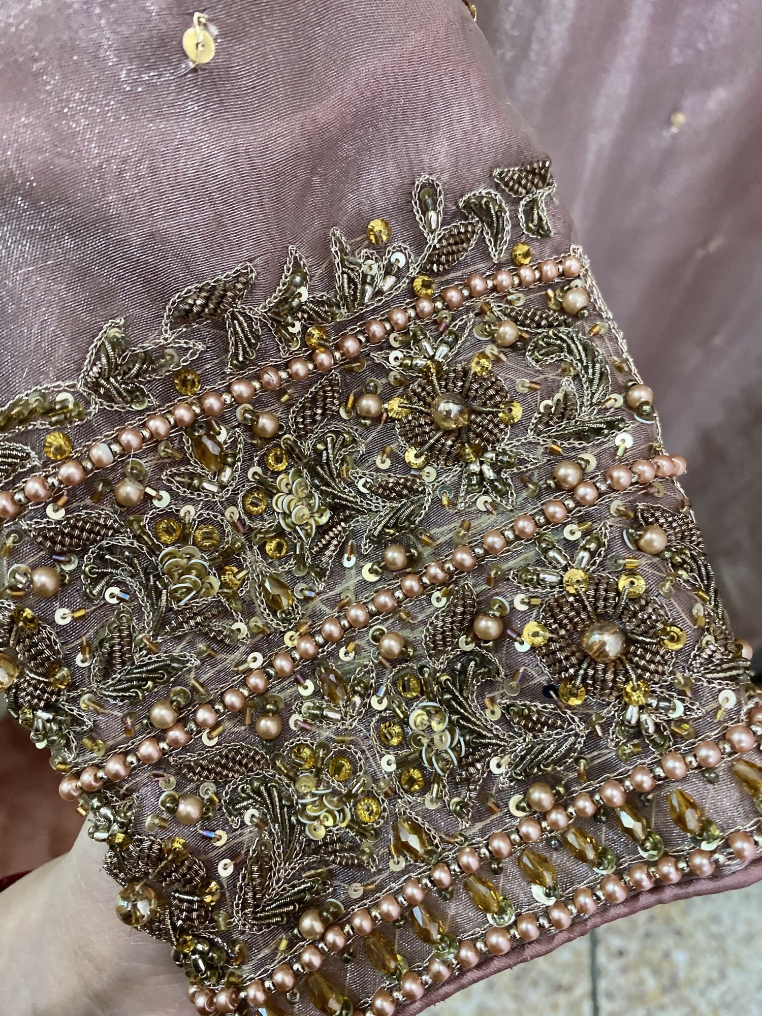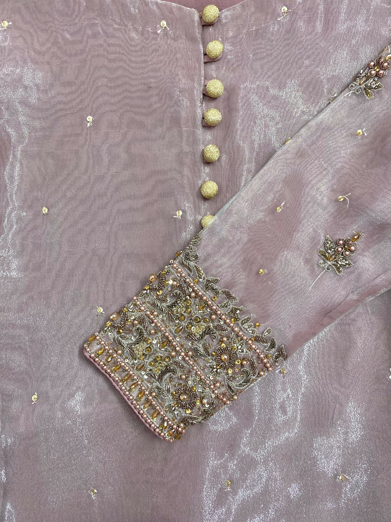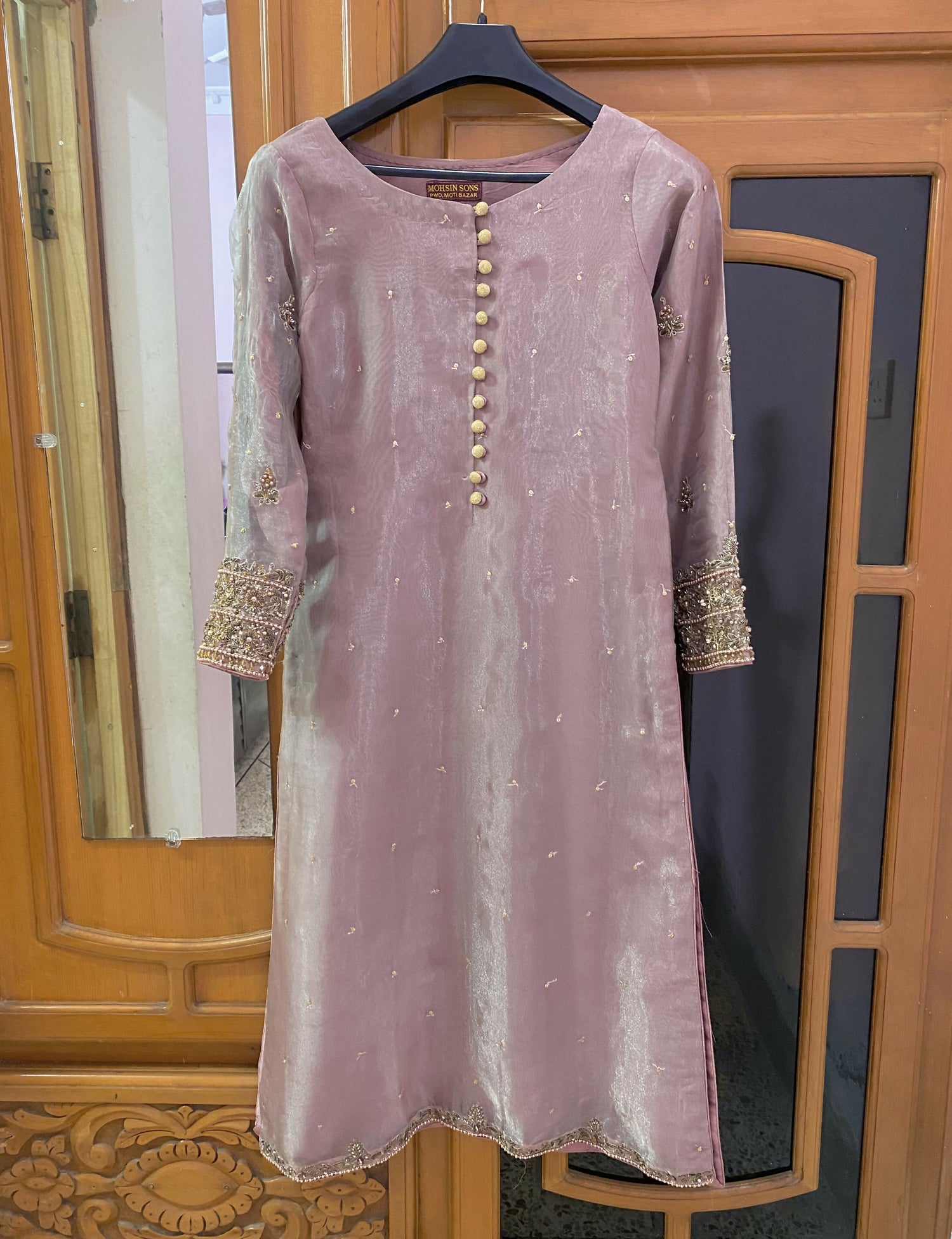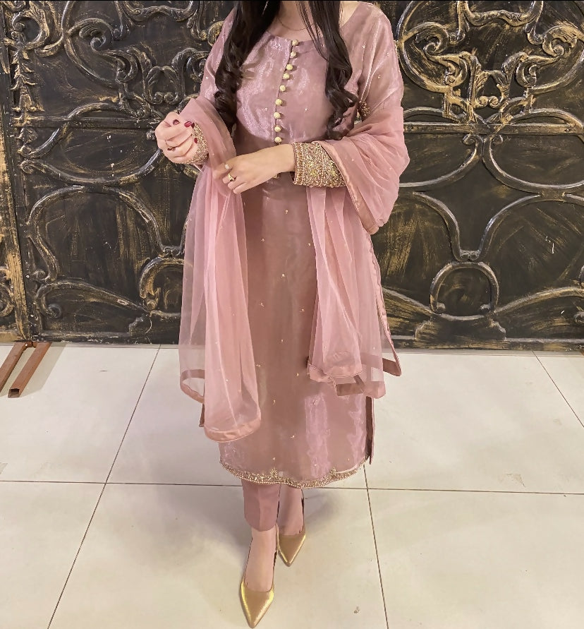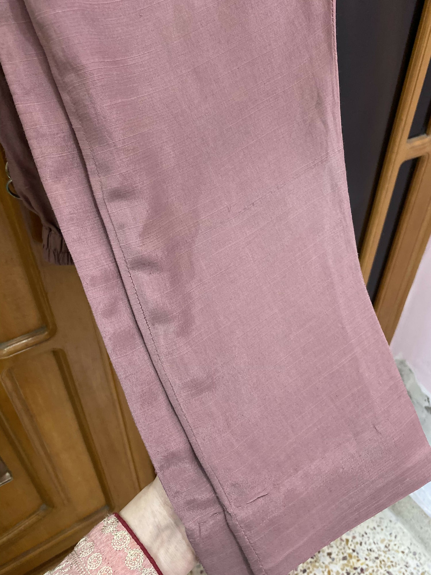 | MATERIAL & MEASUREMENT | Material: Tissue Shirt with Raw Silk Trouser and Net Dupatta Measurements Shirt Length: 48 inches Chest: 18.5 inches |