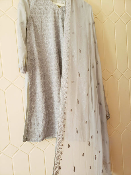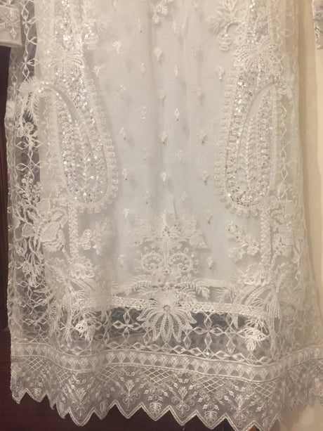 Embroidered White Suit 4 PC | Women Locally Made Formals | Medium | Preloved