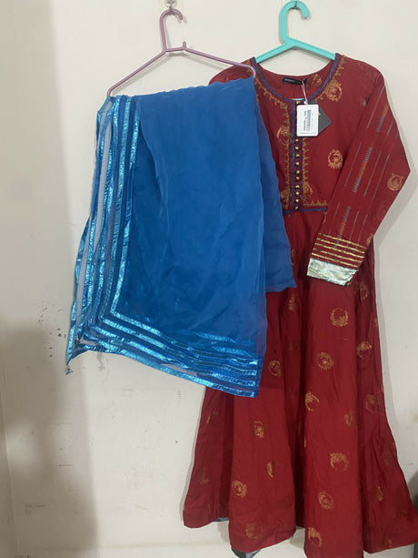Ferozi Frock 3 Pcs | Women Frocks & Maxis | Medium | Worn Once