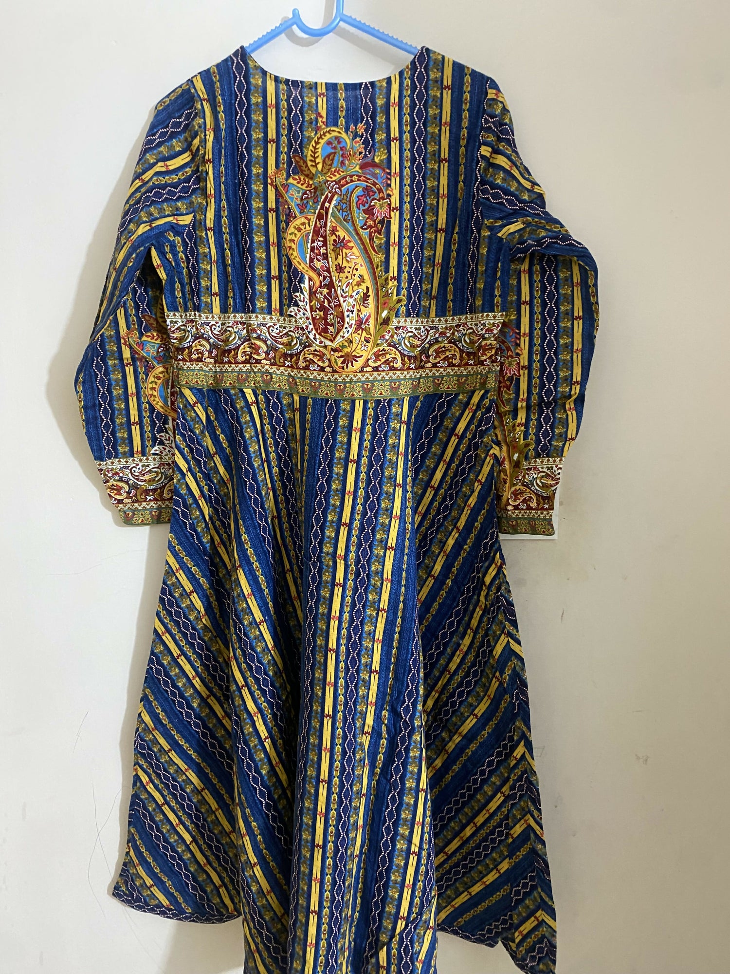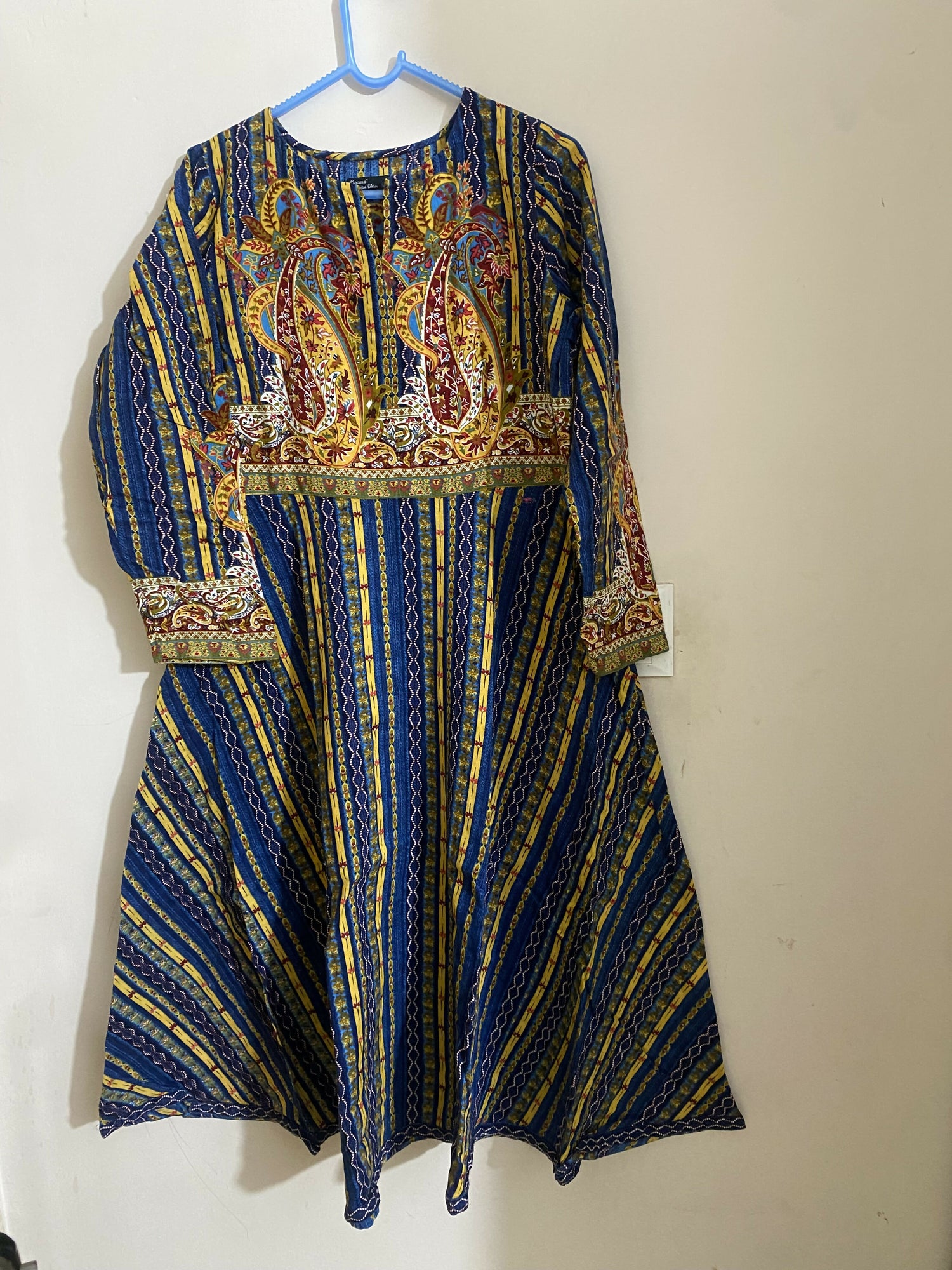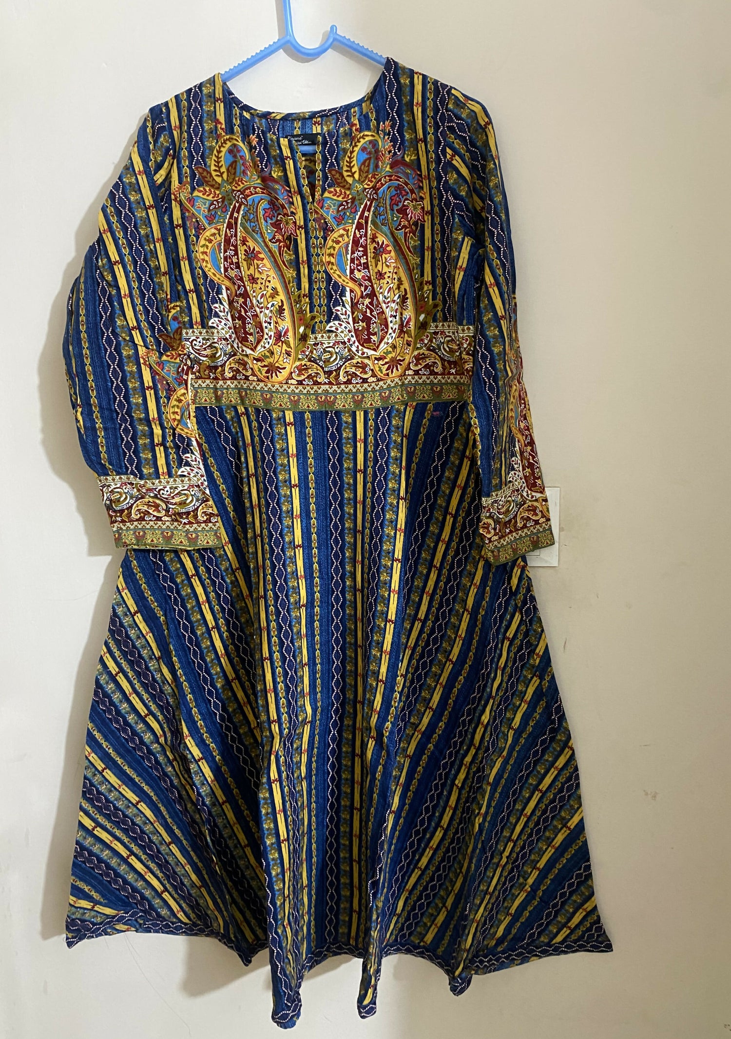 | MATERIAL & MEASUREMENT | Kayseria khadar frock Size medium Measurement: Chest 20 Leangth 44 |