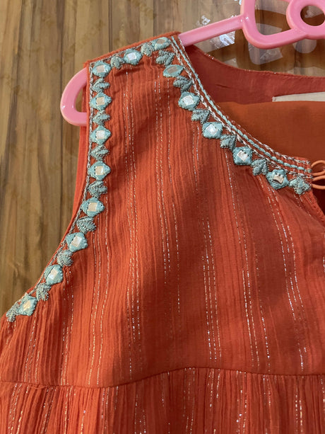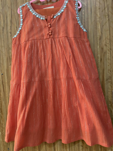hopscotch | پتلون کے ساتھ نارنجی فراک (6-8 سال) | لڑکیوں کی شلوار قمیض | ایک بار پہنا۔