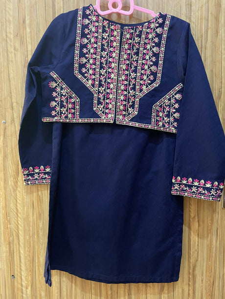 منی نابالغ | نیلی لڑکیوں کی کڑھائی شدہ قمیض (5-6 سال) | لڑکیوں کی شلوار قمیض | ایک بار پہنا۔