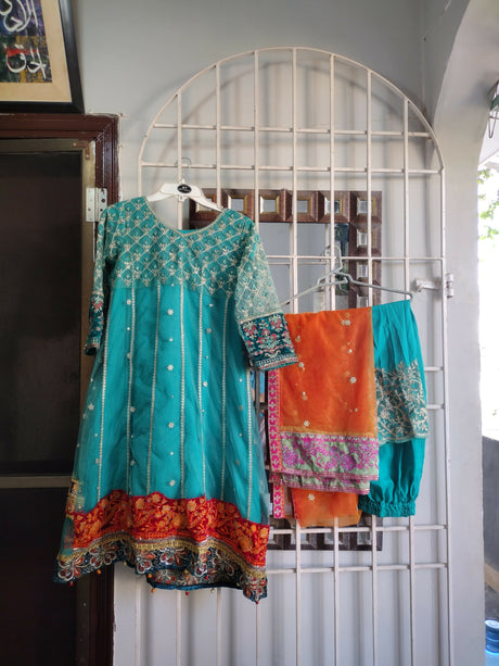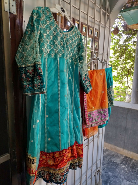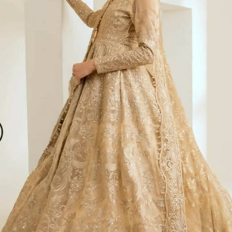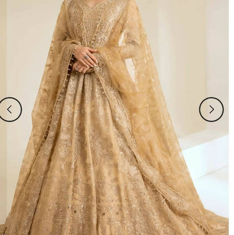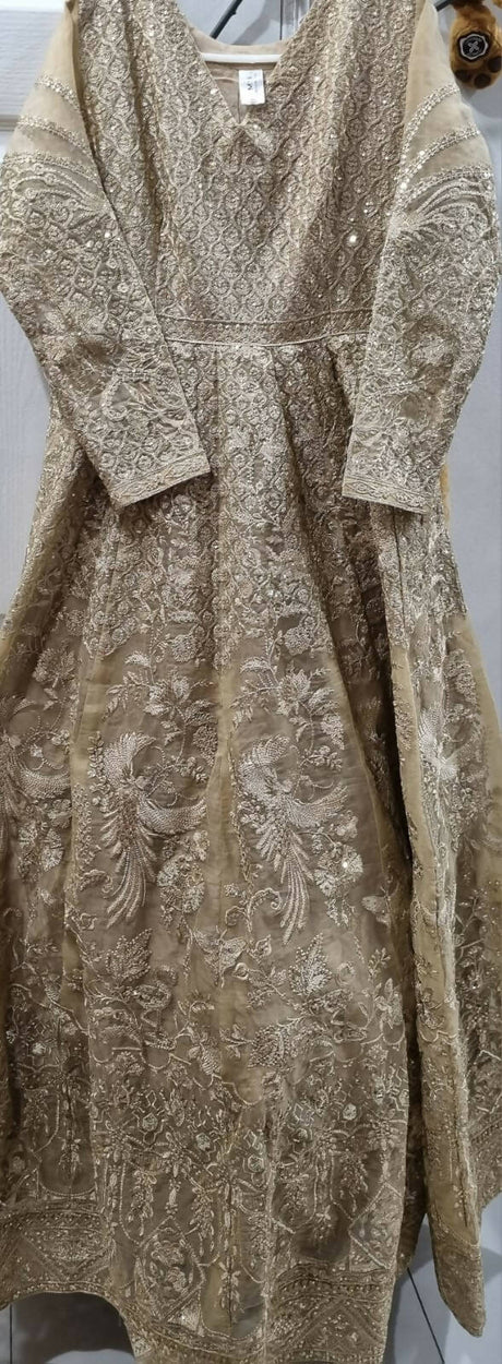 Maryum and Maria Bridals | Festive Golden Maxi | Women Bridals | Medium | Worn Once