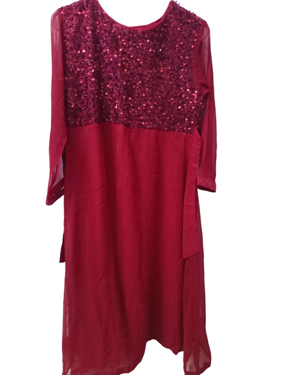 | MATERIAL & MEASUREMENT | Material: Chiffon Measurements: Frock length: 40 Chest: 16 Trouser Length: 34 |