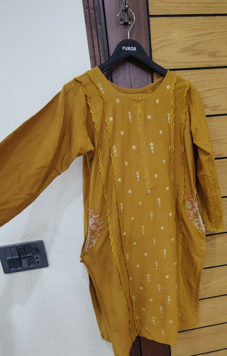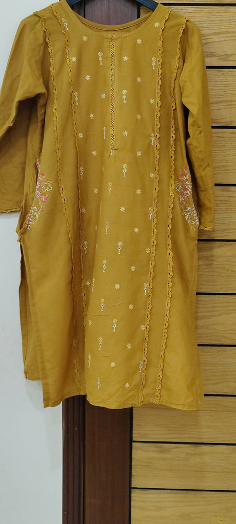 Embroidered Mustard 2PC Suit | Women Locally Made Kurta | Medium | Preloved