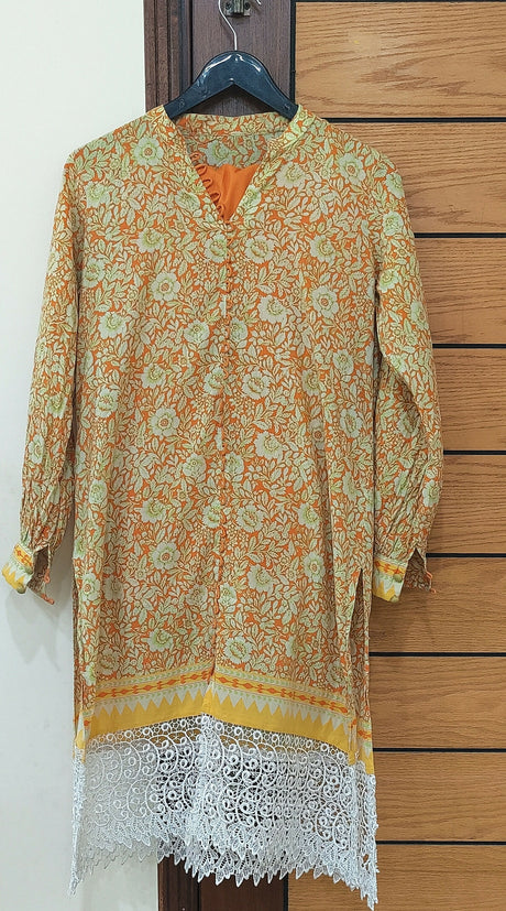 Embroidered Orange Pink Long Shirt | Women Locally Made Kurta | Medium | Worn Once