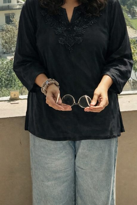 Elegant Black Embroidered Dress | Women Locally Made Kurta | Medium | Worn Once
