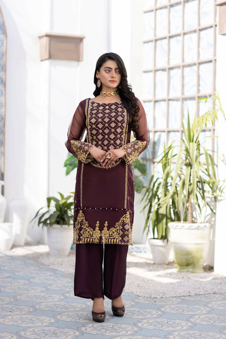 Maroon Flame (2PC) | Women Branded Formals | Small, Medium, Large | Brand New