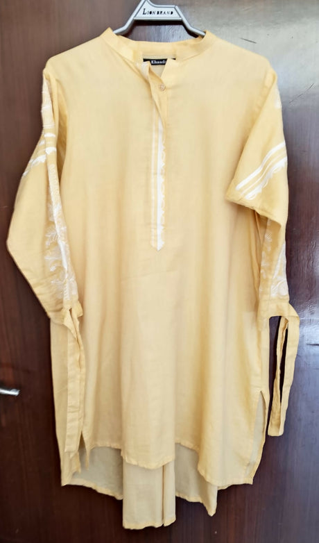 تہوار آفیشل | پیلا کڑھائی والا کرتہ | خواتین نے مقامی طور پر بنایا کرتہ | ایک بار پہنا۔