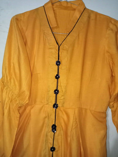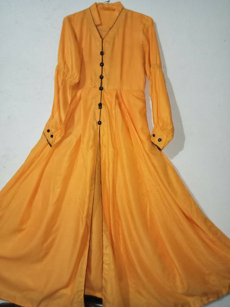لمبی آرام دہ اور پرسکون سینٹر کٹ فراک (سائز: M )| خواتین کے فراکس اور میکسس | ایک بار پہنا۔