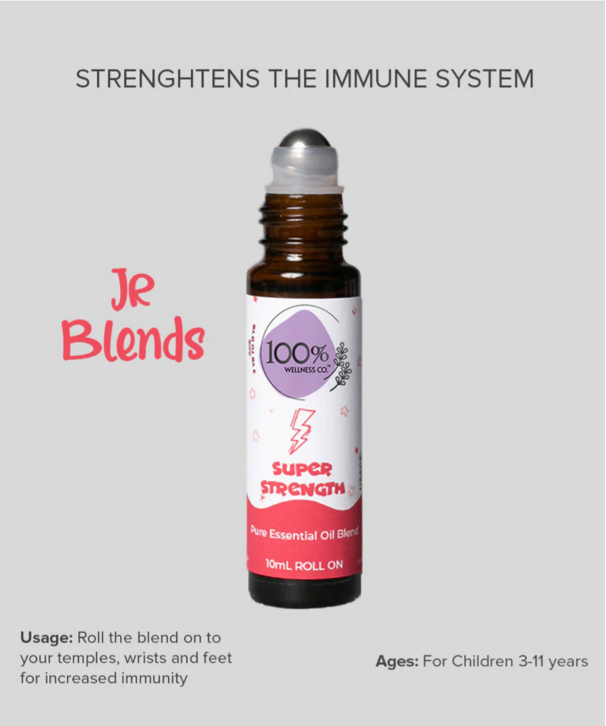 Seeing your child constantly fall sick is the worst thing. Our Super Strength essential oil roll-on blend helps boost the immunity of your little one, making them healthier and stronger in fighting off infections and sicknesses.