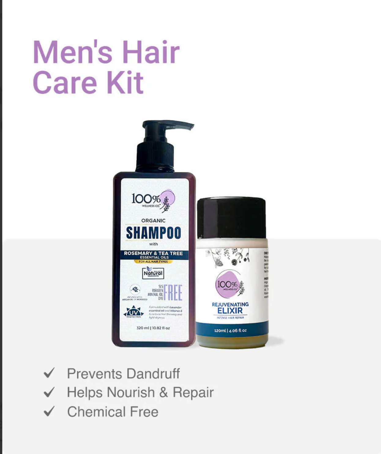 100% Wellness | Men's Hair Care Kit | Men Accessories | Men Care | Brand New