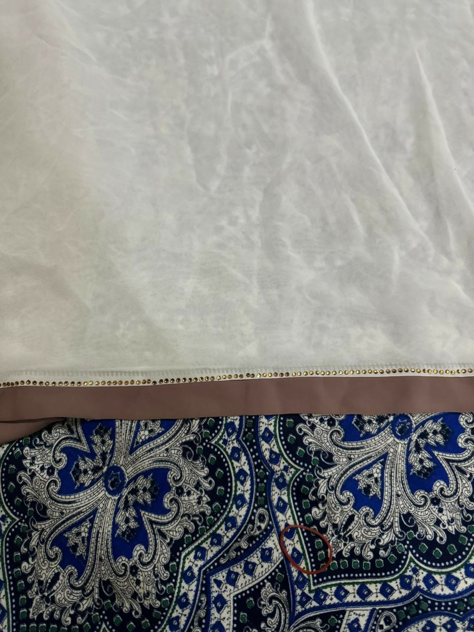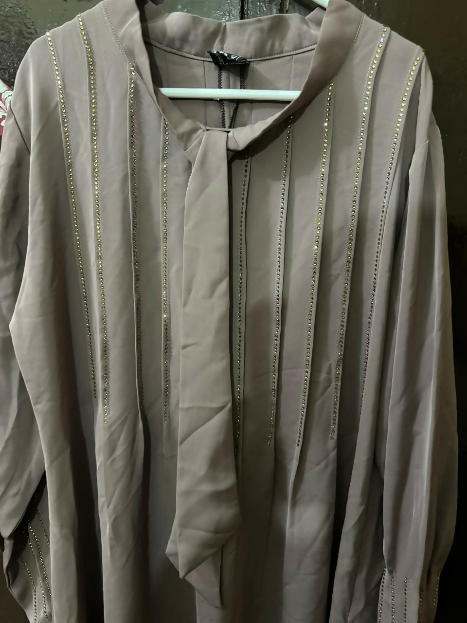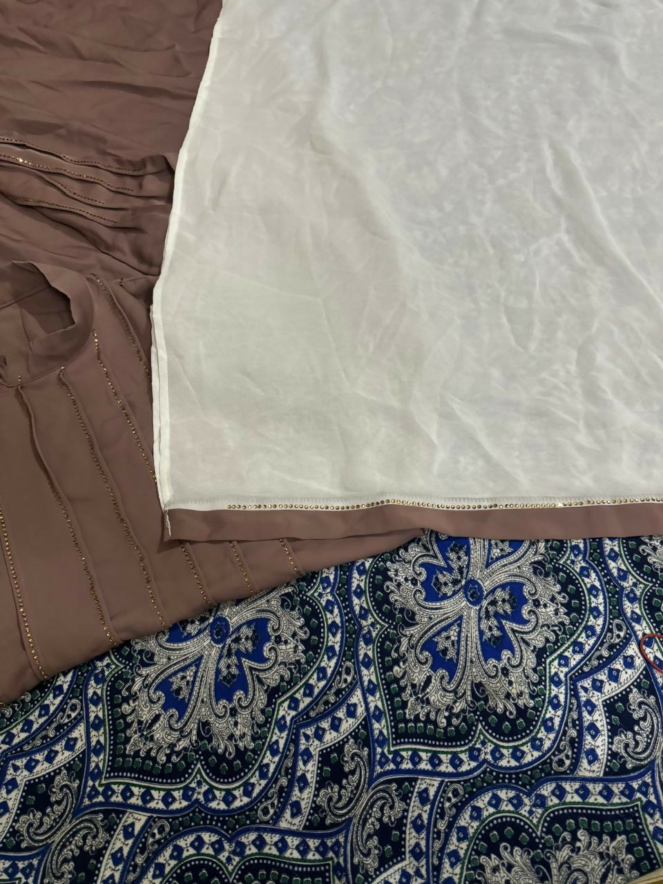 Back front sleeves fancy stone work with tacks colour is piyazi pink and new not used..in picture colour is little bit different due to lite effect..with matching scarf